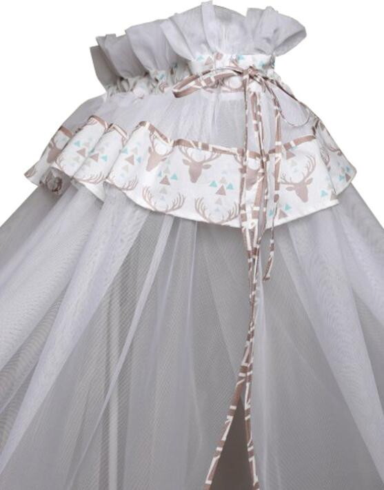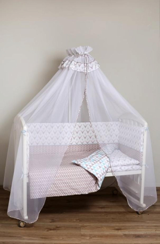 Балдахин Lappetti Скандинавия 057 создан из воздушного и прозрачного фатина. Он повторяет тон тканей, применяемых в одноименных комплектах постельного белья от данного производителя. В качестве украшения используется сатиновая юбка.