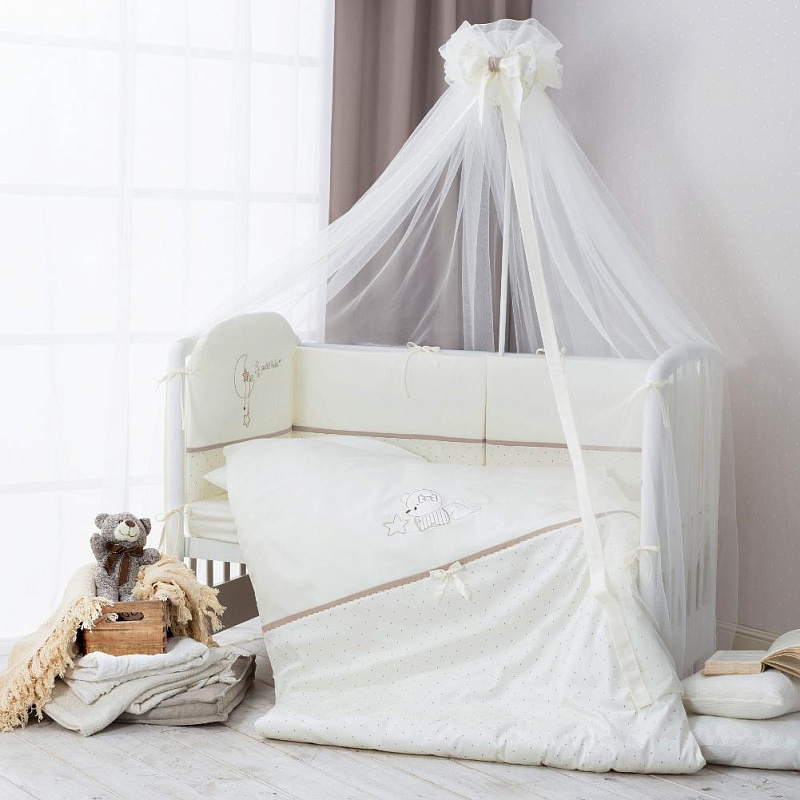 Комната новорождённого малыша это особое сакральное место. Всё в этом сделано для малыша для его удобства, комфорта. Каждая мелочь и каждая вещь подбиралась с любовью и заботой. Особую магию в детской комнате создаёт лёгкий и воздушный балдахин над детской кроваткой. Особенности :лёгкий балдахин полностью накрывает детскую кроватку; обеспечит надёжную защиту от пыли, приглушит свет, при этом совершенно не помешает доступу воздуха; рекомендуется использовать крепление с разъёмным кольцом, продевается в кулису балдахина.