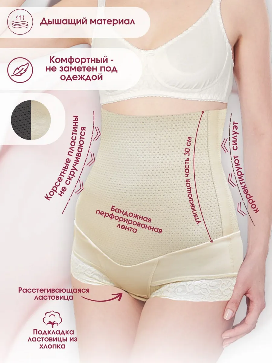 Бандаж компрессионный Основным предназначением бандажа для женщин является фиксация с обеспечением необходимого уровня сдавливания мягких тканей. Чаще всего такое белье изготавливается из материалов с высокой степенью эластичности, так как они способны повышать мышечный тонус, улучшать кровоснабжение, а самое главное – оказывать хорошее компрессионное воздействие. Для чего нужен бандаж? Бандаж помогает визуально создать идеальную фигуру, подчеркивая линию талии и эффектно приподнимая ягодицы .Белье хорошо поддерживает поясницу, позволяя ей находиться в правильном положении. Таким образом, снимается нагрузка и предотвращаются болевые ощущения, а также прочие неприятные симптомы .Изделие не дает мышцам живота и ягодиц расслабиться, постоянно держа их в тонусе. Первое время после родов, когда женщинам противопоказаны активные физические нагрузки, жесткие диеты и разгрузочные дни для похудения. Бандаж компрессионный хорошо помогает вернуть фигуру в былую форму. Использовать белье можно не только в послеродовый период и для коррекции фигуры, но и после операций, например, для профилактики появления грыж, а также после липосакции. С его помощью период реабилитации проходит быстро и безболезненно .Заказать бандаж утягивающий можно на нашем сайте по привлекательной цене и с возможностью доставки в любую точку РФ. Противопоказания: Нельзя использовать изделие беременным женщинам, так как это может пагубно сказаться на плоде. Запрещено ношение корсета на теле с открытыми ранами, порезами, свежими швами. Прежде чем начать использование, необходимо завершить курс лечения. То же касается дерматитов, ожогов и других кожных заболеваний. В случае если известны какого-то рода аллергические реакции на компоненты, присутствующие в составе материалов, из которых выполнено изделие, от использования бандажа нужно отказаться в пользу другой модели. Особенности и преимущества бандажа Д-58 от Крейт: Нижняя часть изделия выполнена из стильного и приятного к телу кружевного полотна, верхняя – из бандажной ленты, имеющей перфорацию. Цвет изделия классический – белый. Выглядит бандаж утягивающий как высокие трусики. Высота верхней бандажной части составляет 30 см, что позволяет белью полностью закрывать живот и сидеть наиболее эргономично. Конструкция хорошо держится на фигуре за счет специальных косточек, находящихся в боковых швах на корсете. Благодаря им бандаж не скручивается и хорошо выполняет свои функции коррекции силуэта. Для удобства использования ластовицу можно расстегивать при необходимости.