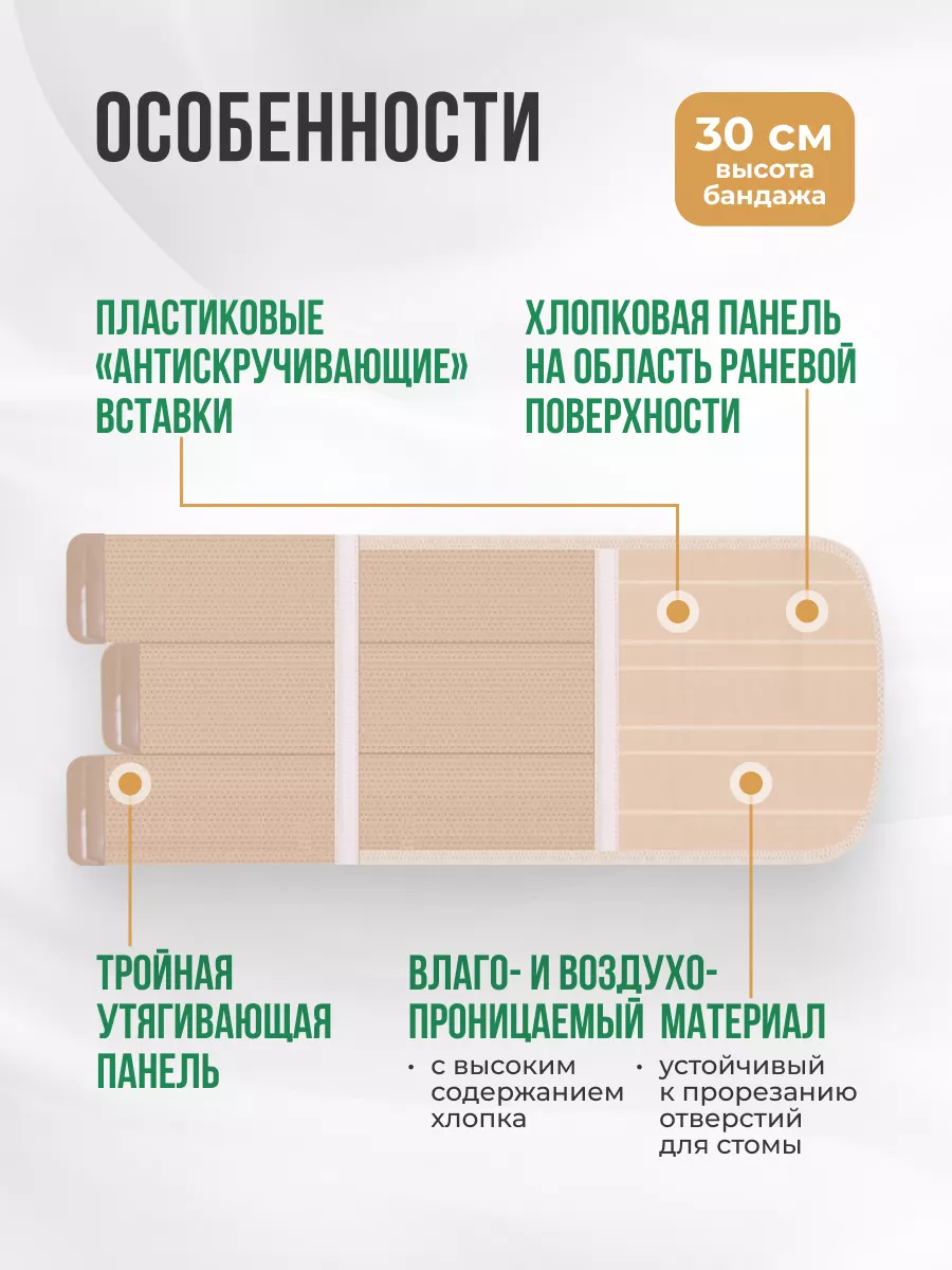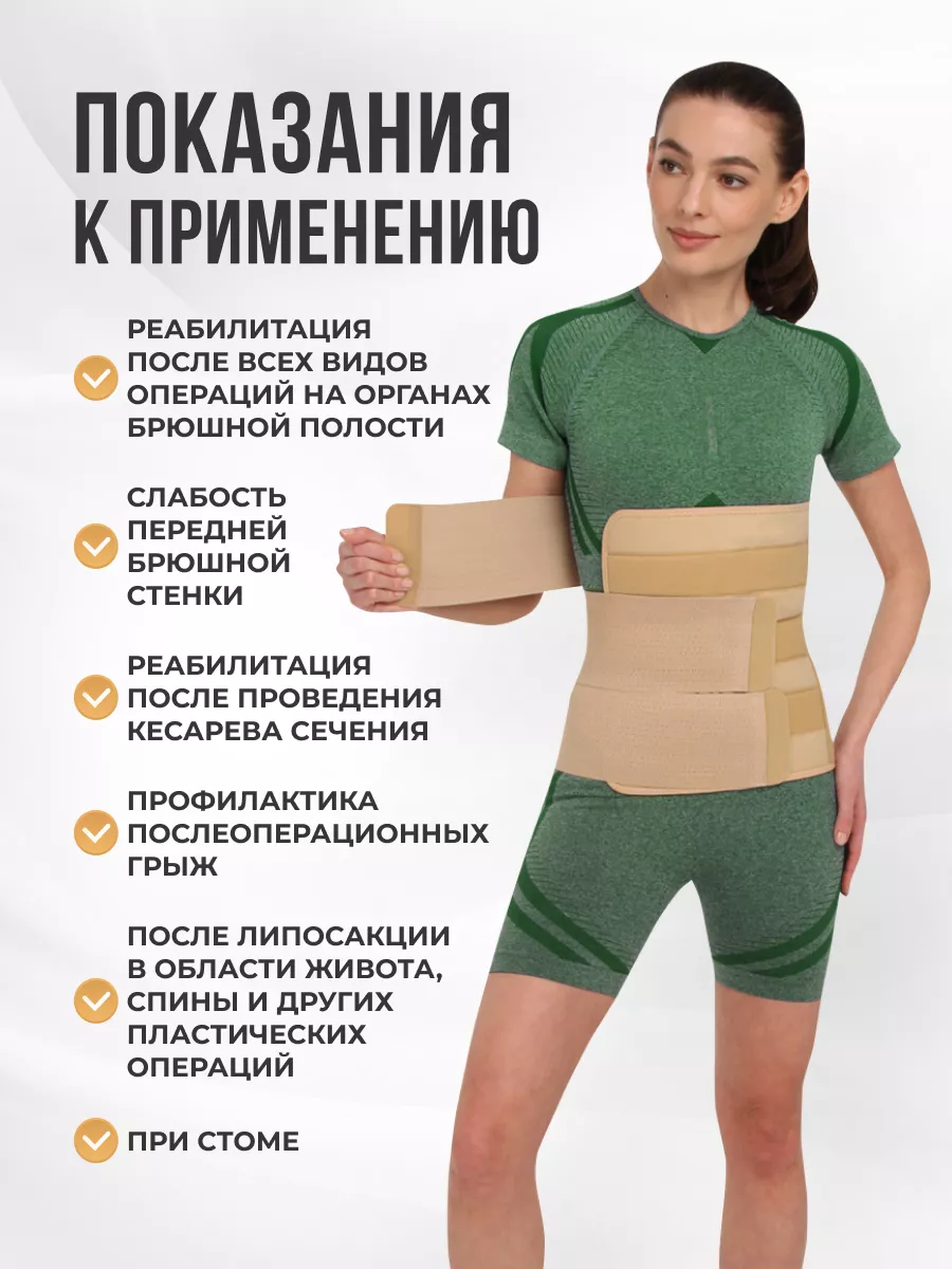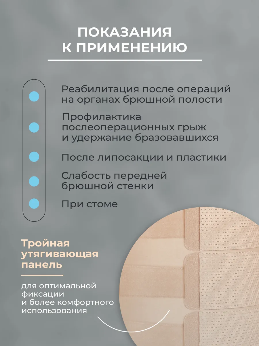 Бандаж послеоперационный абдоминальный Экотен ПО-30, 30 см. Обеспечивает поддержку передней брюшной стенки, создавая оптимальные условия для заживления рубца, Тройная утягивающая панель влаго- и воздухопроницаемый гипоаллергенный материал с высоким содержанием хлопка, устойчивый к прорезанию отверстий для стомы, можно носить на голое тело. Пластиковые «антискручивающие» ребра жесткости Хлопковая панель на область раневой поверхности Идеально "садятся" по фигуре, незаметны под одеждой Реабилитация после всех видов хирургических вмешательств на органах брюшной полости, после проведения кесарева сечения, профилактика грыж, удержание уже образовавшихся на белой линии живота. После липосакции и других пластических манипуляций. Пояс - превосходное решение для людей, прошедших операции на позвоночник и внутренности. Этот товар разработан специально для обеспечения комфорта во время восстановительного периода. Подходит для детей, подростков, мужчин и женщин всех возрастов любой комплекции.Корсет изготовлен из Высококачественной ткани, которые дарят мягкость, эластичность и воздухопроницаемость. Он обладает удобной фиксацией и не вызывает дискомфорта даже при длительном использовании. Уменьшает нагрузку на швы, предотвращает раздражение и смятие, а также снижает отек и ускорить процесс регинирации ран. Он поддерживает мышц и способствует правильному распределению давления, что особенно важно во часы реабилитационного отрезка. Корректор полужесткий также может использоваться для коррекции, и поддержания результата похудения заметно подтягивая силуэт. Доступен в разных размерах, чтобы подойти каждому человеку. Он имеет регулируемые застежки, которые позволяют настроить его под индивидуальные потребности. Мужской и женский. Показания к применению:- после всех видов операций на органах брюшной полости.- после проведения кесарева сечения. - профилактика расхождения послеоперационных швов. - профилактика послеоперационных грыж. - удержание уже образовавшихся грыж белой линии живота. - после липосакции области живота, спины и других пластических операций. - слабость передней брюшной стенки. - при стоме (материалы из которых выполнены бандажи не теряют своих свойств при прорезании локальных отверстий). - могут применяться как послеродовые бандажи, для обеспечения поддержки и восстановления тонуса растянутых тканей живота. Основные особенности: - высота - 25 см (двойная утягивающая панель).- панели с применением 100% хлопковой ткани. – закрывающие непосредственно места проведения операций. - пластиковые «антискручивающие» вставки. – бандажи держат форму, даже при повышенной активности. - анатомическая форма бандажей. – идеально садятся по фигуре, незаметны под одеждой. - устойчивость материалов к прорезанию локальных отверстий при стоме