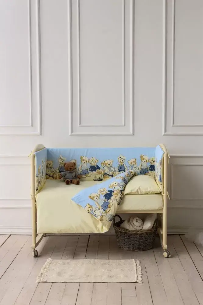 Состав: ткань поплин 100% хлопок, наполнитель холлкон, Бортик из 4-х частей 360*40 см , съемный чехол