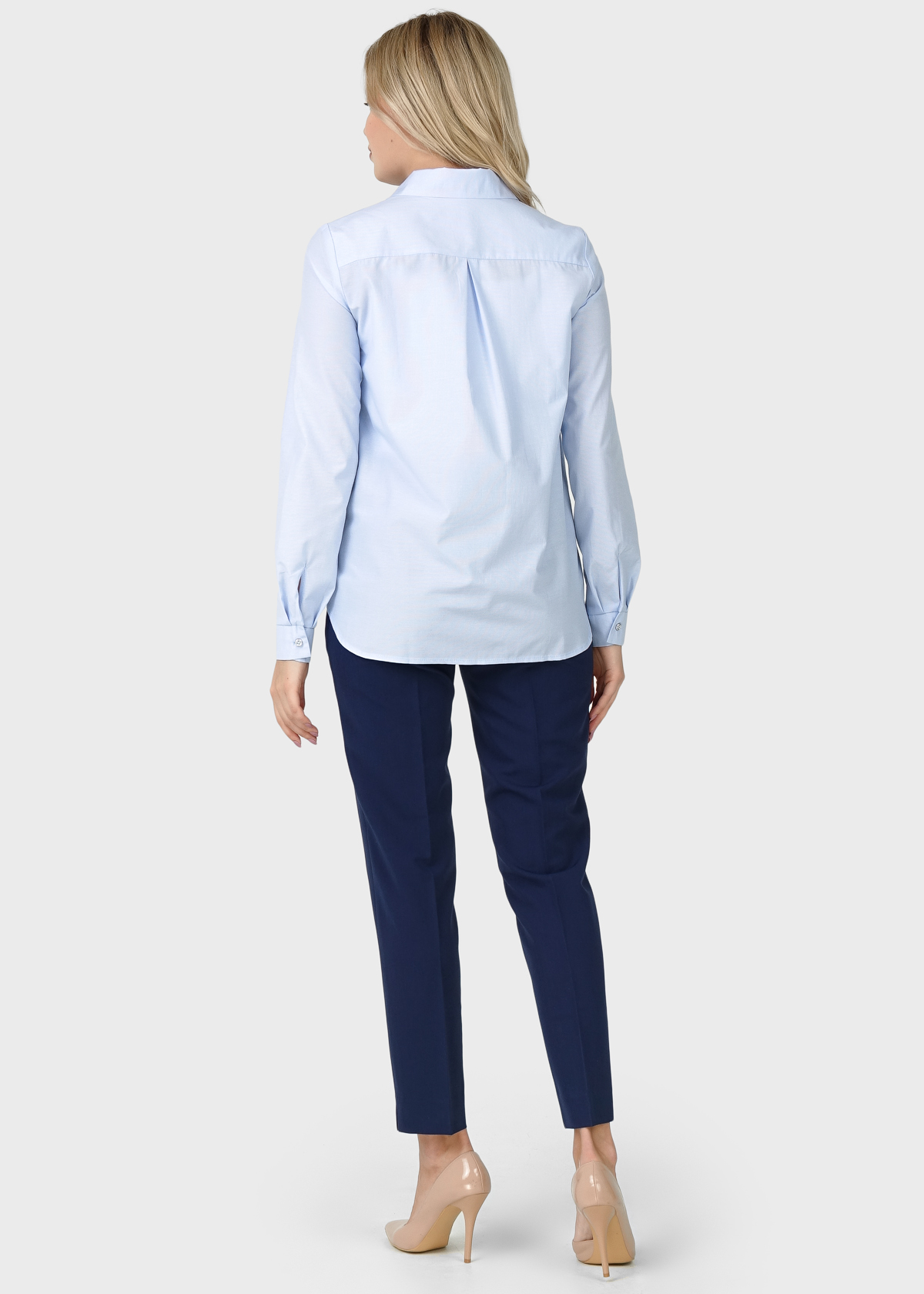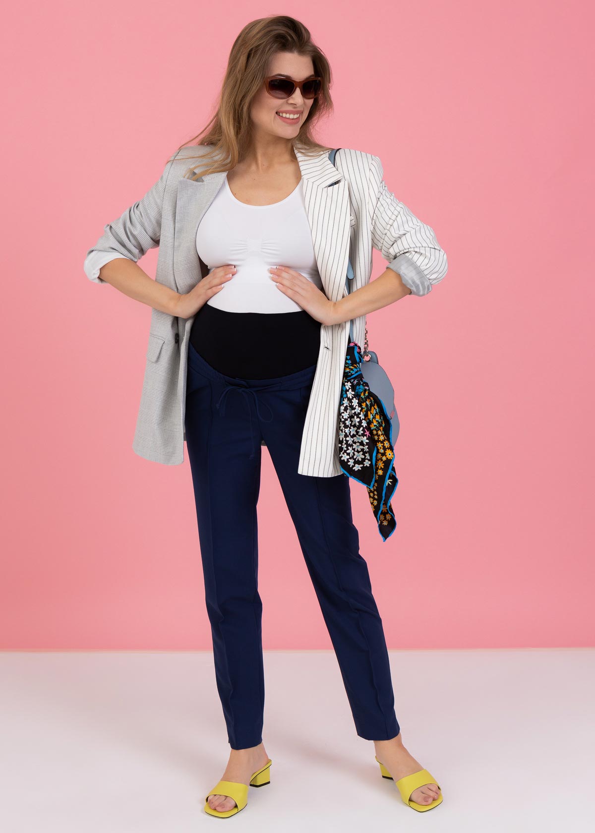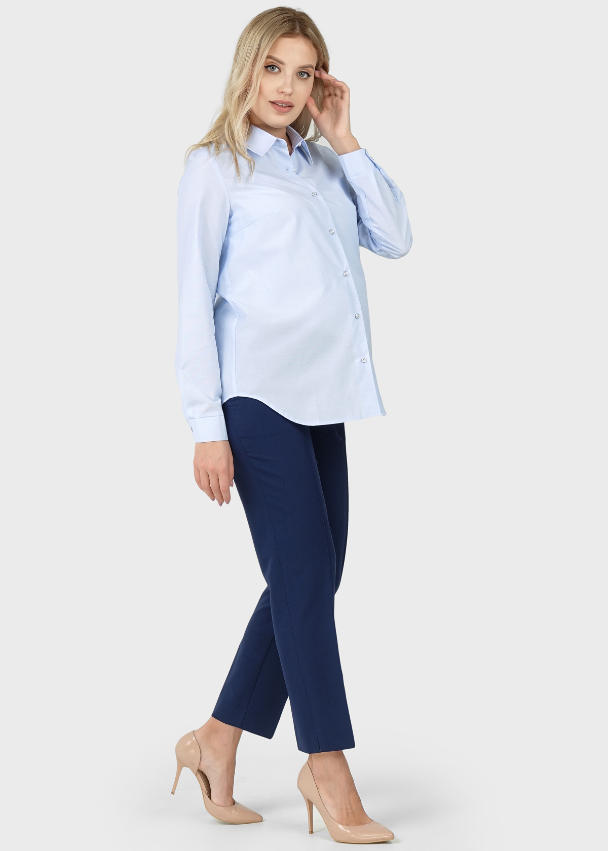 Универсальные брюки в классическом стиле из мягкой, шелковистой, приятной на ощупь ткани Гальяно. Комфорт и удобство посадки обеспечивает крой, выполненный по лекалам для беременных. Трикотажный эластичный пояс средней высоты бережно поддерживает растущий живот.