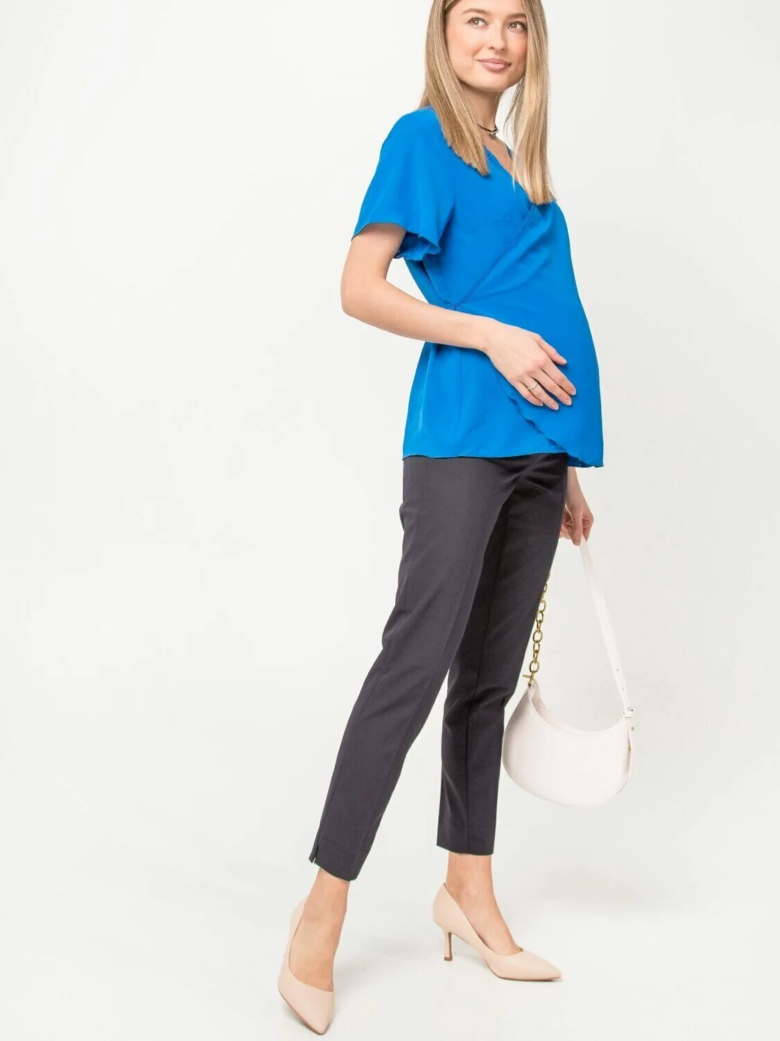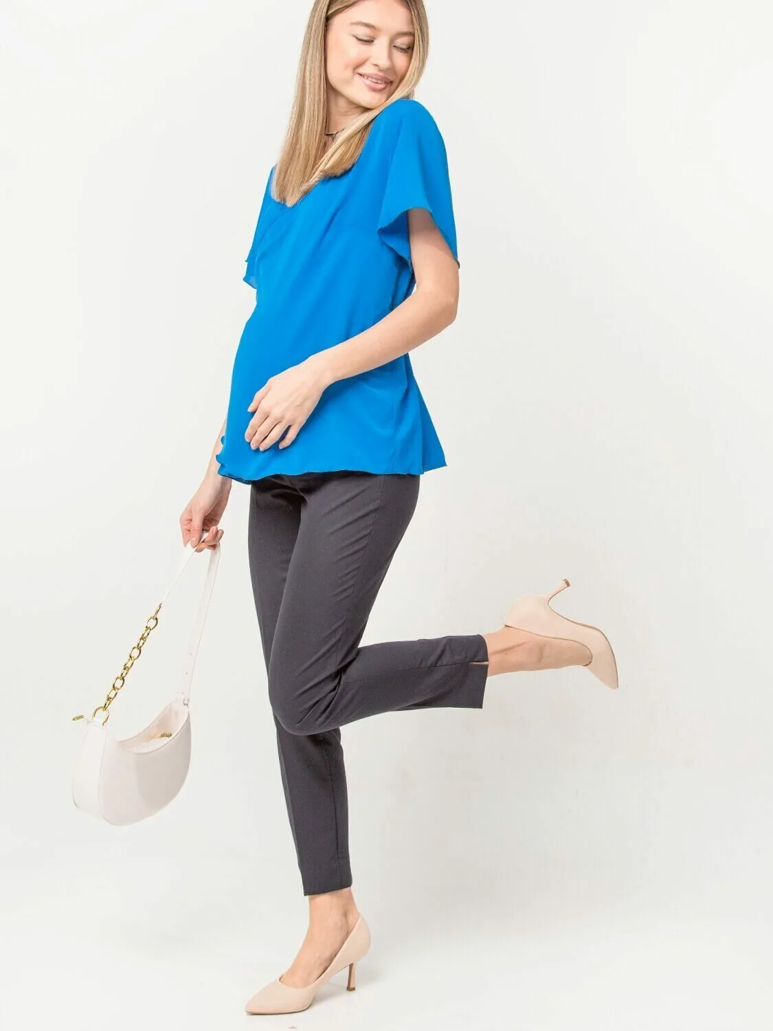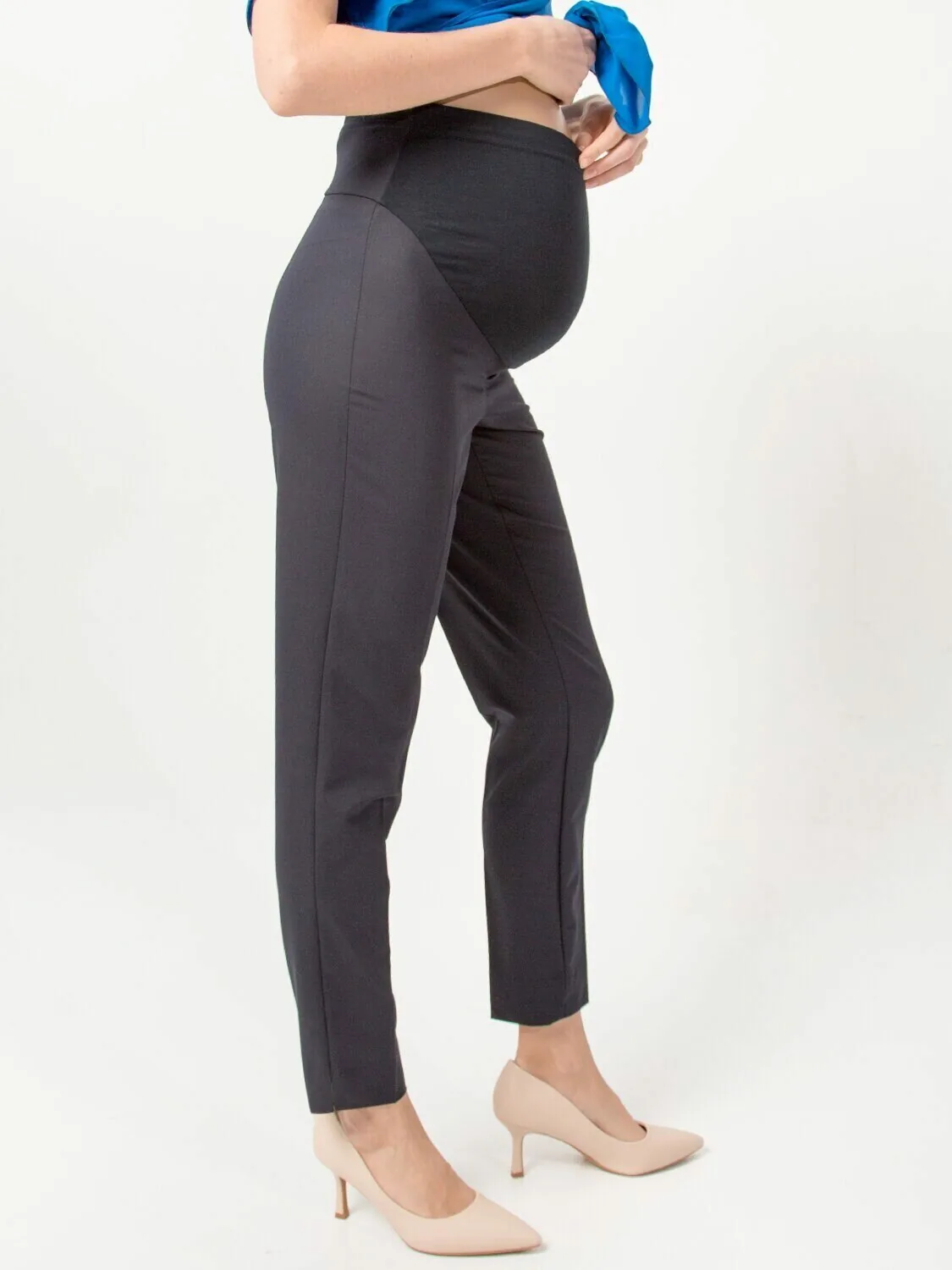 Современные классические повседневные брюки для беременных офисные. Длина изделия по внутреннему шву 73 см. Брюки для будущих мам выполнены из легкой костюмной ткани с небольшим стрейчем. Штаны для беременных в офис хорошо садятся по фигуре, в них удобно и комфортно, не сковывают движений и не давят на растущий живот. Штаны для беременных на животе выполнена специальная трикотажная вставка с регулируемой резинкой, которая дополнительно выполняет поддерживающую функцию. Будущие мамы очень довольны , что цельная спинка хорошо держится на талии и исключает спадание. Брюки для беременных большие размеры без карманов. Специальный крой с учетом анатомических особенностей беременных позволяет носить изделие от начала до конца беременности, а также после родов.