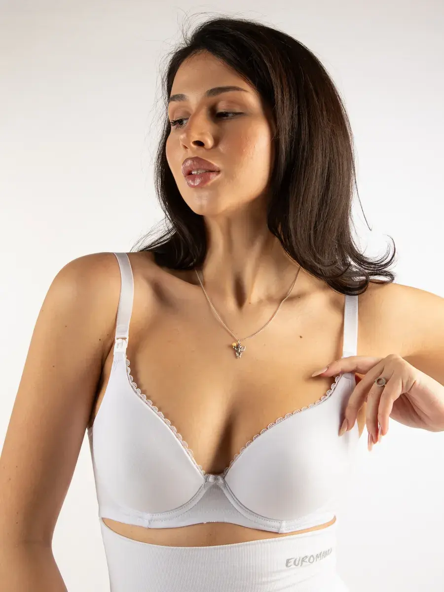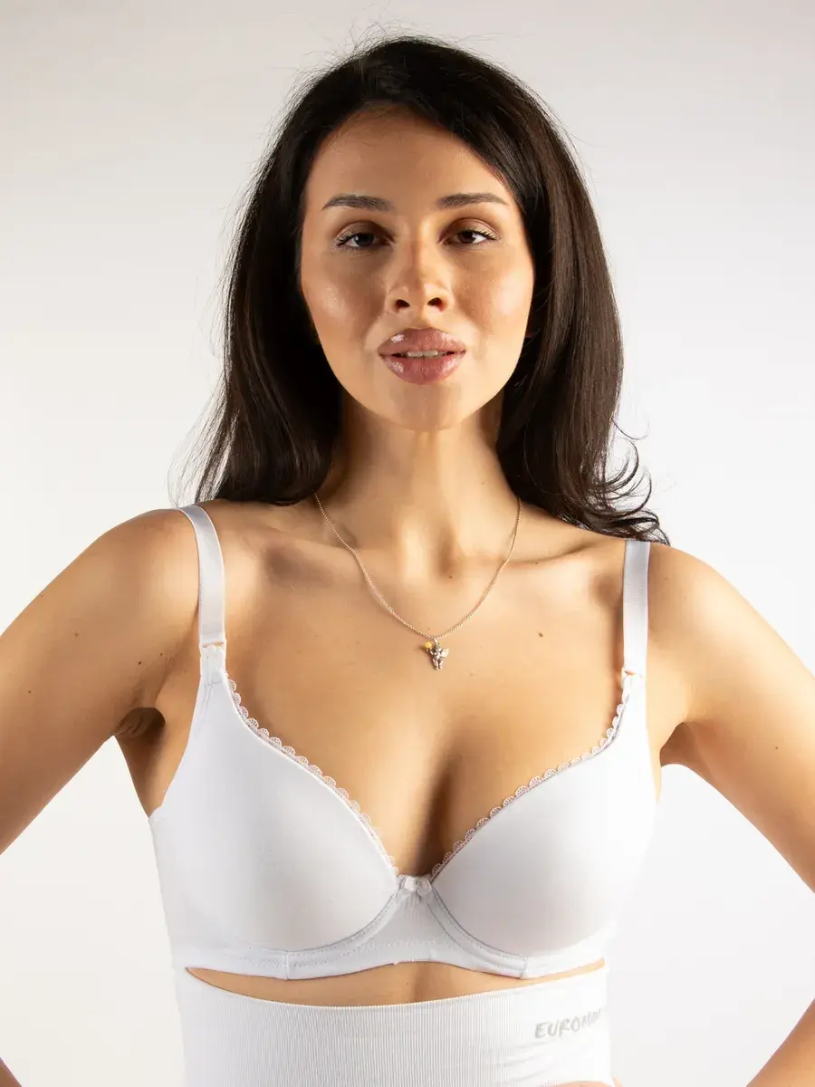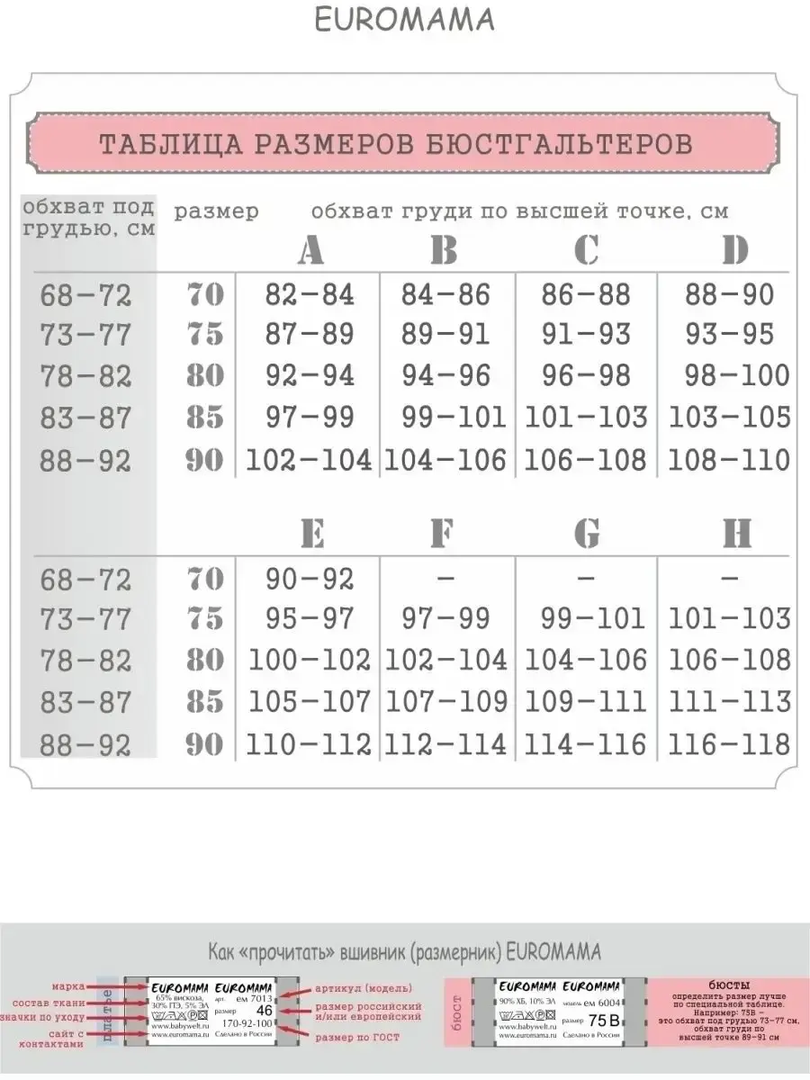 Элизе – это нежный элегантный бюстгальтер для беременных и кормящих мам. Выполнен из мягкого хлопка. Цельные поролоновые чашки на гибком каркасе (косточках) хорошо поддерживают грудь. Бюст сидит и смотрится очень хорошо. Мягкий хлопок нежных расцветок. Бретель бюста регулируются по длине. Чашки бюста отстегиваются при помощи специальных клипс.