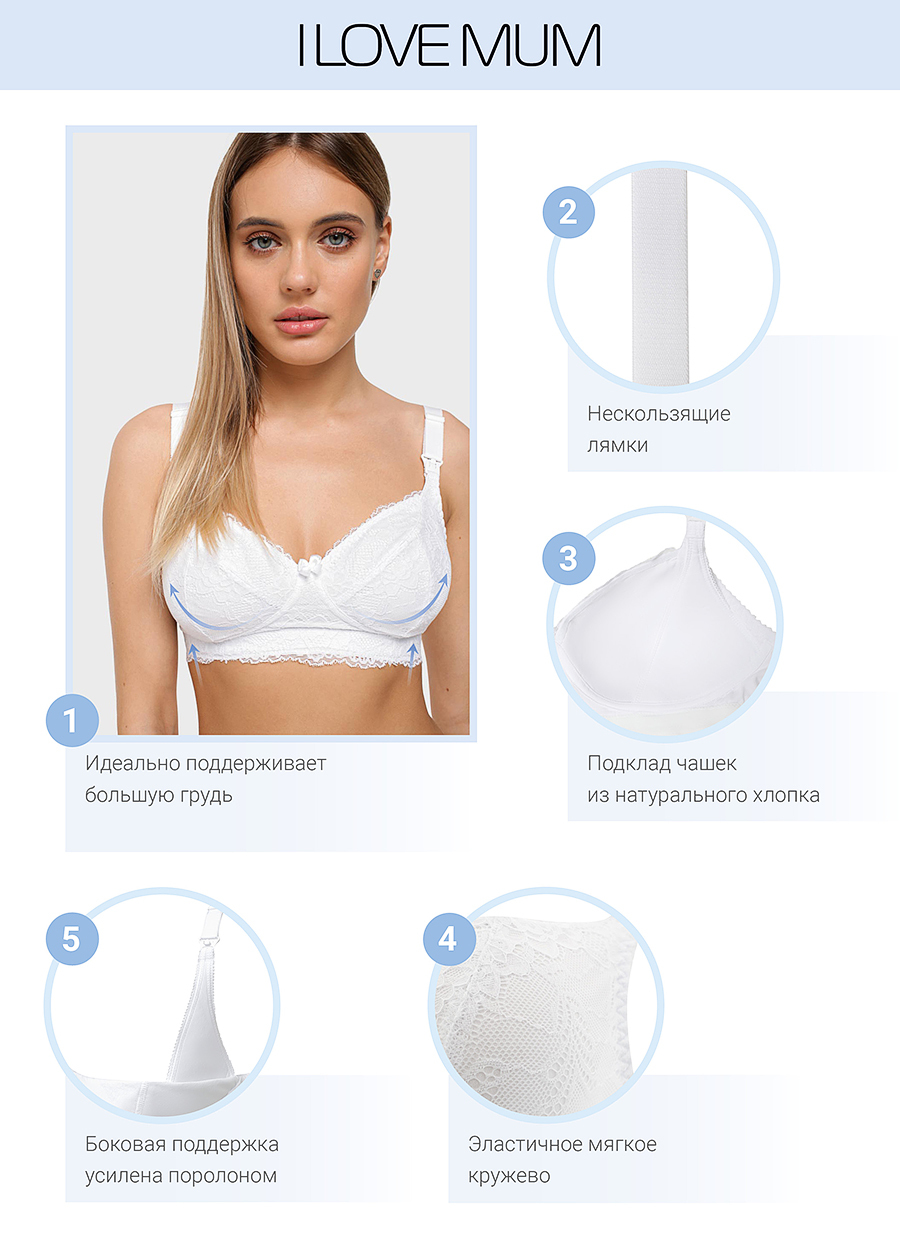 Поддерживающий хлопковый бюстгальтер для будущих и кормящих мам. Для максимального комфорта чашечки выполнены без косточек и крепятся на широкие бретельки. Для кормления малыша на бретелях бюстгальтера — специальная застежка, позволяющая легко освободить грудь. Этот бюстгальтер — идеальный вариант базового повседневного белья.