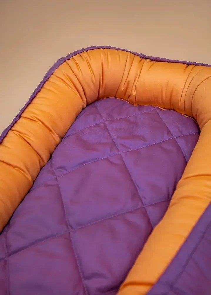 Подушка-гнездышко Lappetti «Цветные фантазии» 4101/2 предназначена для новорожденных. Она имеет толстые мягкие бортики, которые фиксируются шнурком. Развязав его, можно разложить бортики, преобразовав подушку в пеленальный матрасик. В качестве наполнителя здесь используется холлкон.