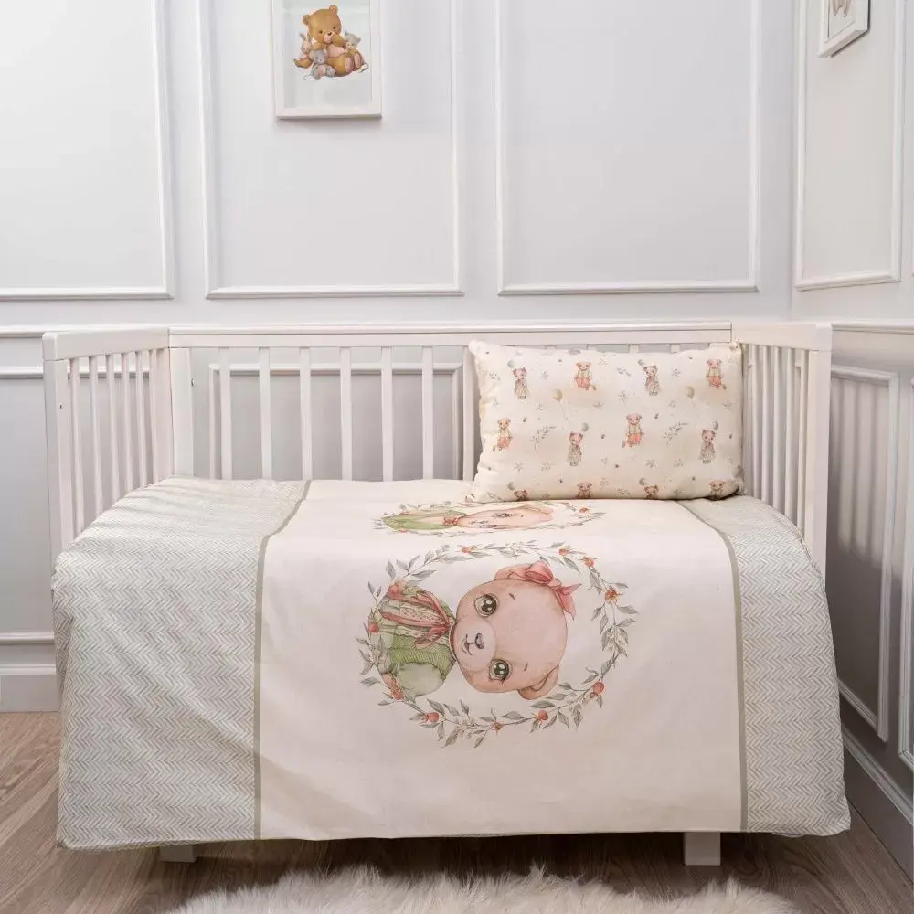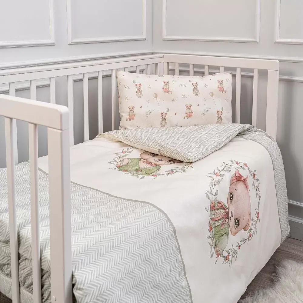 Комплект постельный Винтаж пододеяльник простыня наволочка Lappetti 3120/3 оливковый. Милый и комфортный комплект постельных принадлежностей для детской кроватки, выполнен из высококачественного поплина европейского качества.