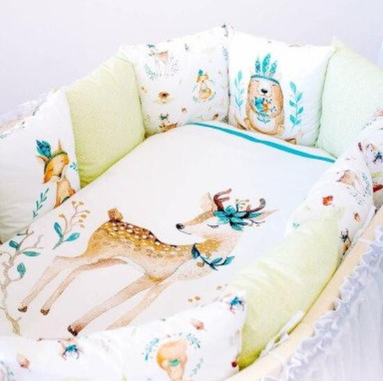 Комплект в кроватку Волшебный лес 6 принадлежностей Lappetti 6074/1 голубой. Предлагаем Вам яркий комплект постельных принадлежностей для детской кроватки. Выполнен из высококачественного поплина европейского качества. Популярный и стильный дизайн. Яркие и сочные тона не вызывают чувства тревоги, благоприятно влияют на психику ребенка и делают его сон спокойным и безопасным.