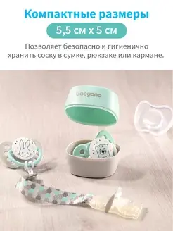 Контейнер для пустышки Babyono, 0+ обеспечит надежное и гигиеничное хранение пустышек. Компактный и стильный, он легко помещается в сумку или карман, защищая пустышку от загрязнений и повреждений. Контейнер изготовлен из высококачественных, безопасных материалов, не содержащих BPA, что гарантирует безопасность вашего малыша. Удобная застежка позволяет быстро и легко открыть контейнер, обеспечивая быстрый доступ к пустышке в нужный момент. Футляр для пустышки - это практичный и необходимый аксессуар для каждого малыша и его родителей. Он выполнен из высококачественного материала, который является нетоксичным, безопасным и прочным, не содержит бисфенол А. Этот материал также обеспечивает полную защиту от загрязнений, сохраняя сосочку в чистоте и защищая её от пыли, бактерий и микробов. Держатель для сосок имеет компактный размер и приятный внешний вид. Благодаря универсальному дизайну, он подходит для всех стандартных размеров пустышек и может быть легко прикреплён к коляске, кроватке, сумке или переноске. Футляр вмещает до двух пустышек, что обеспечивает дополнительное удобство и безопасность. Кроме того, этот чехол легко моется, подходит для ежедневного использования. Он идеально подходит для путешествий или использования в роддоме, обеспечивая гигиеничность и удобство в использовании. Вы можете выбрать один из нежных цветов футляра, чтобы он идеально подходил к вашему стилю и предпочтениям. Материал футляра имеет ряд преимуществ перед силиконом, латексом и натуральными материалами, обеспечивая максимальную защиту и комфорт. В итоге, футляр для пустышки является незаменимым аксессуаром для каждого родителя, который заботится о здоровье и комфорте своего малыша. ВНИМАНИЕ! В комплект входит только контейнер, без пустышки! Органайзер для хранения сосок - отличная и удобная вещь! Подходит для любых видов сосок и пустышек 0-6, 6-18 или 18+ месяцев. Отличный аксессуар как дополнение к подарку на рождение ребёнка для мальчика или девочки, на выписку из роддома.