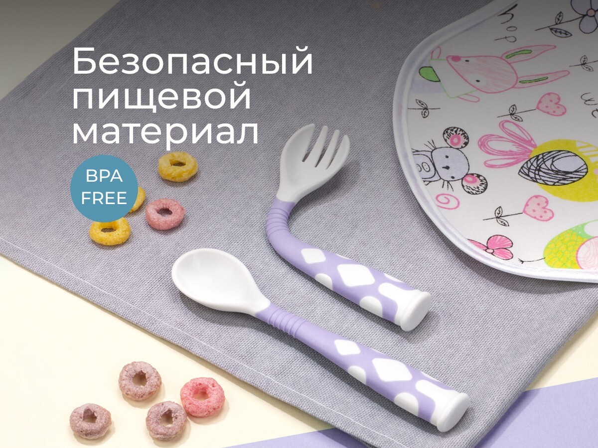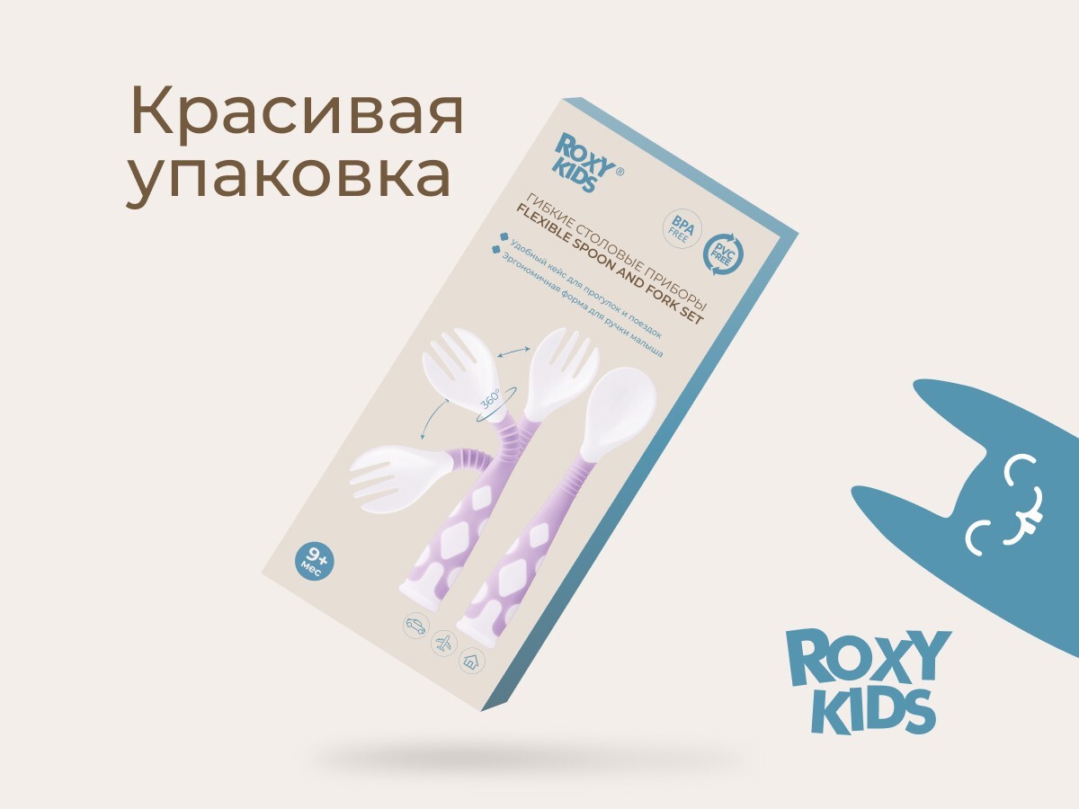 Гибкая ручка – специально для малышей от 9 месяцев, которые только учатся держать ложку. Когда дети ещё не умеют держать столовые приборы по-взрослому, ложку и вилку можно изогнуть так, чтобы им было удобнее схватить ручку целиком в кулачок и поднести еду ко рту. По мере взросления ручки приборов можно разогнуть, чтобы научить ребенка правильно держать любимую ложку. Прочный дорожный кейс для хранения поможет сохранить приборы в чистоте.