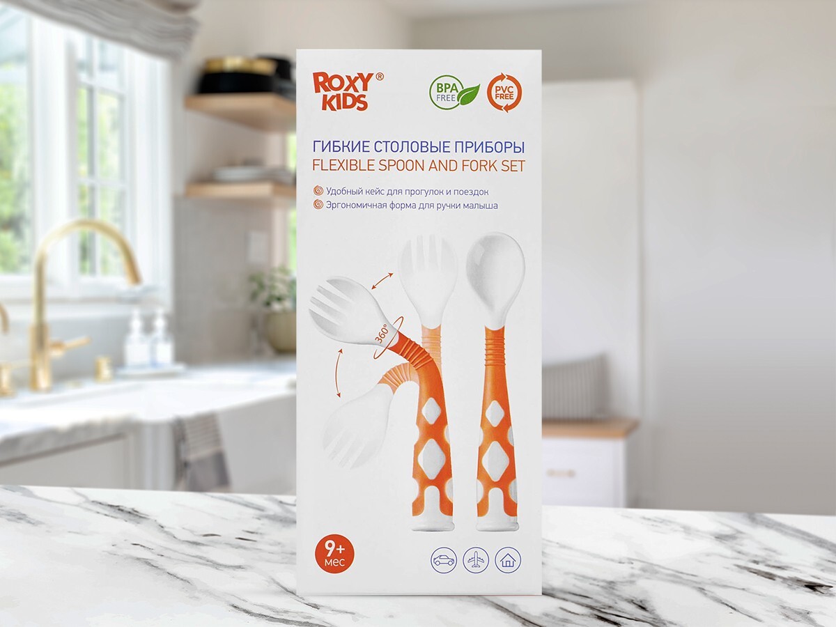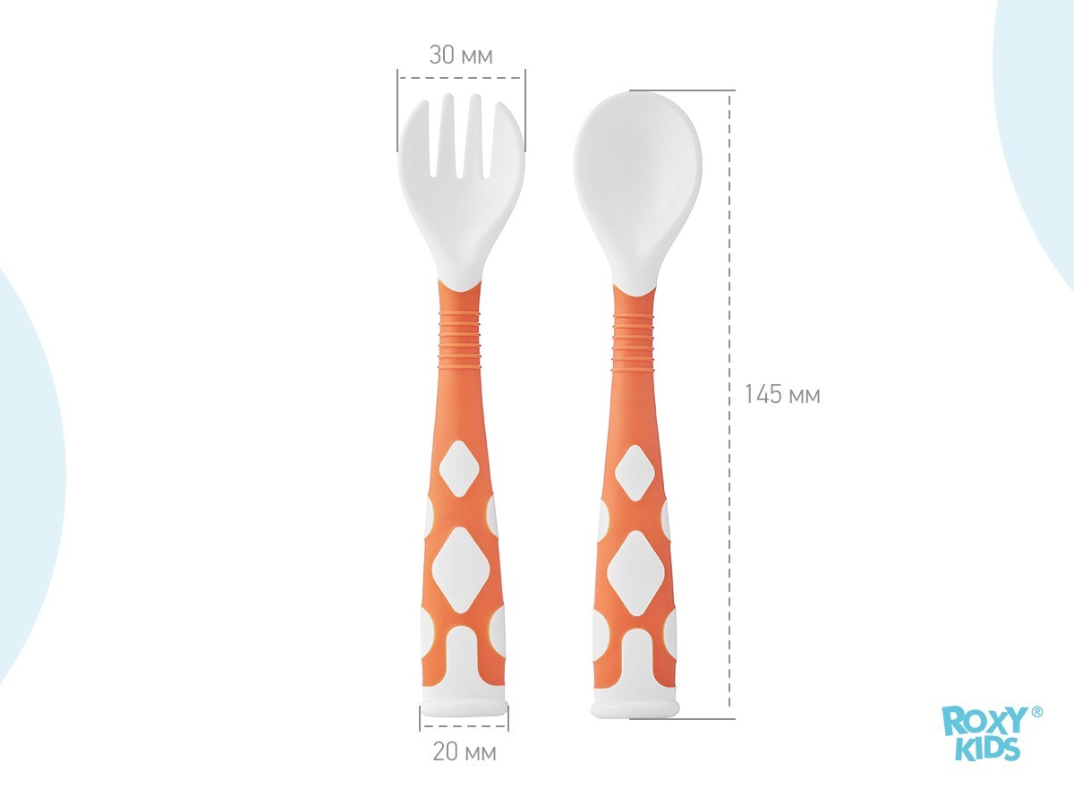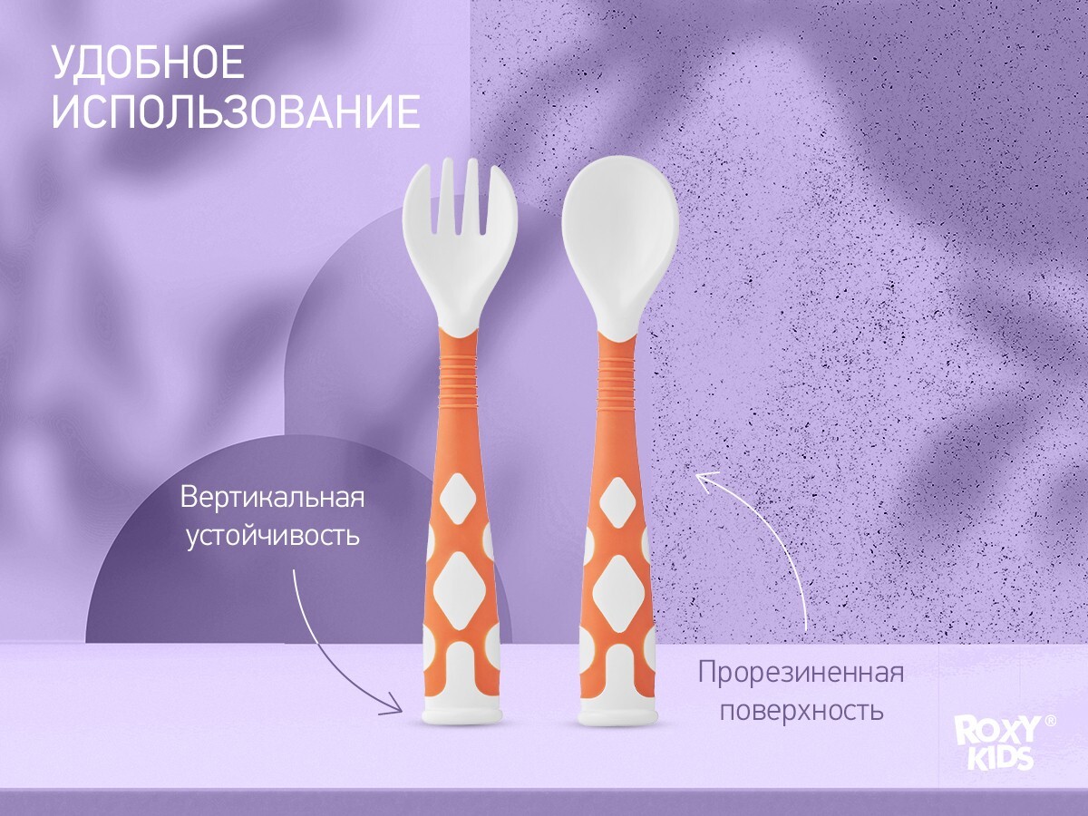 Набор гибких столовых приборов ROXY-KIDS для малышей в пенале, ложка и вилка, цвет оранжевый