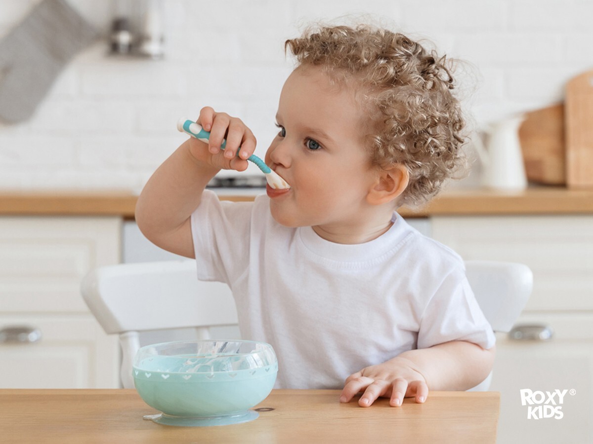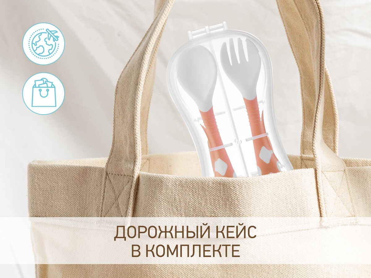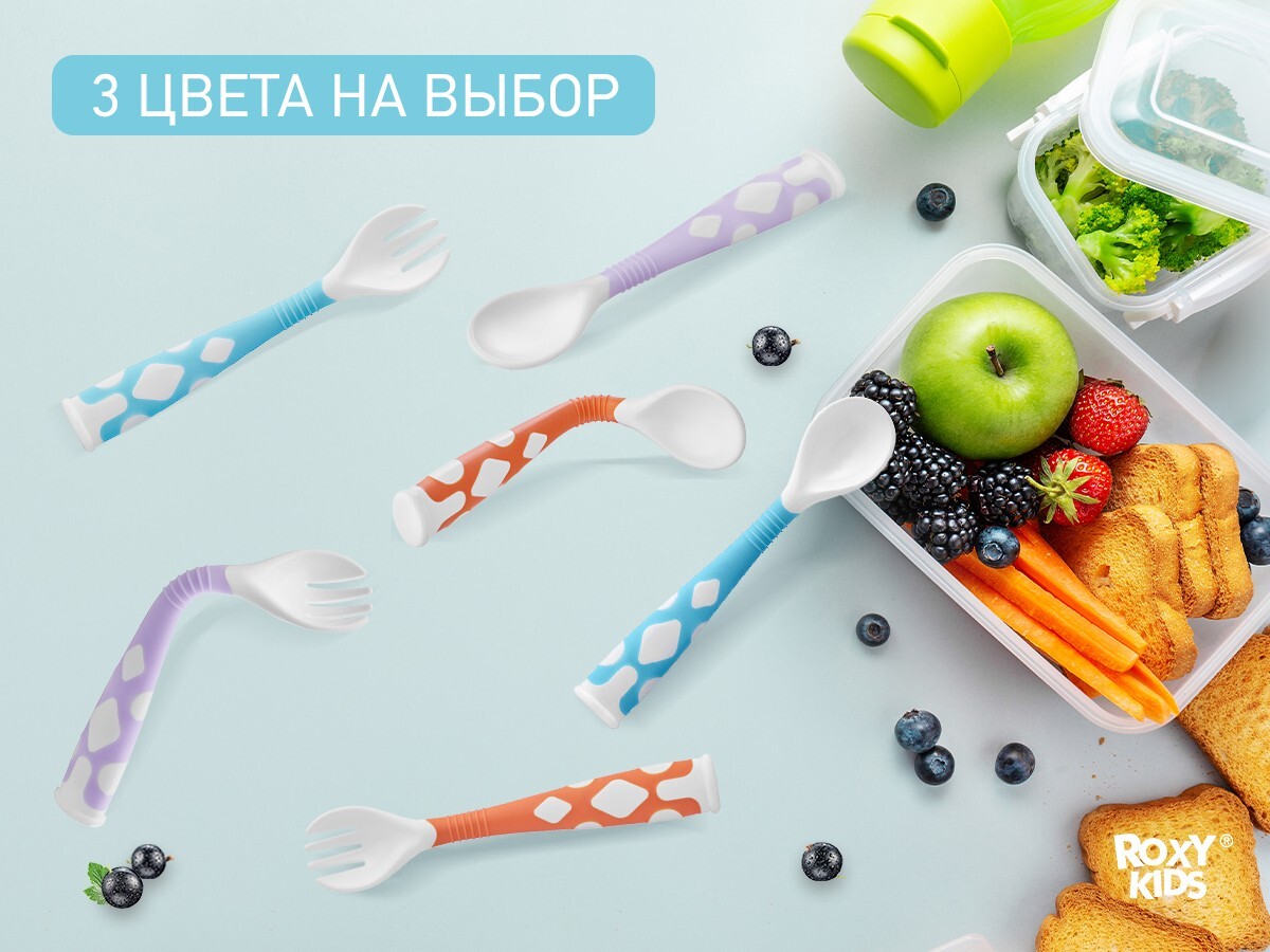 Набор гибких столовых приборов ROXY-KIDS для малышей в пенале, ложка и вилка, цвет оранжевый