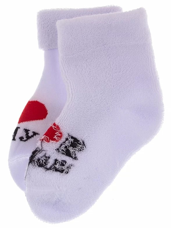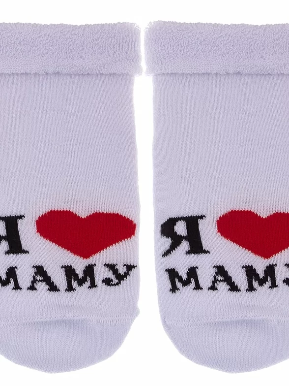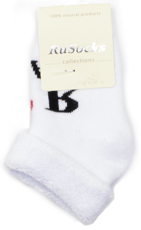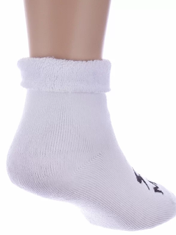 Зимние или межсезонные укороченные детские носки, цвет белый, махровые, с отворотом, с принтом, теплые, состав: 88% хлопок, 10% полиамид, 2% эластан, арт. Д-111-01
