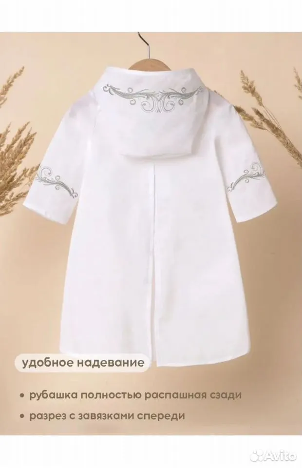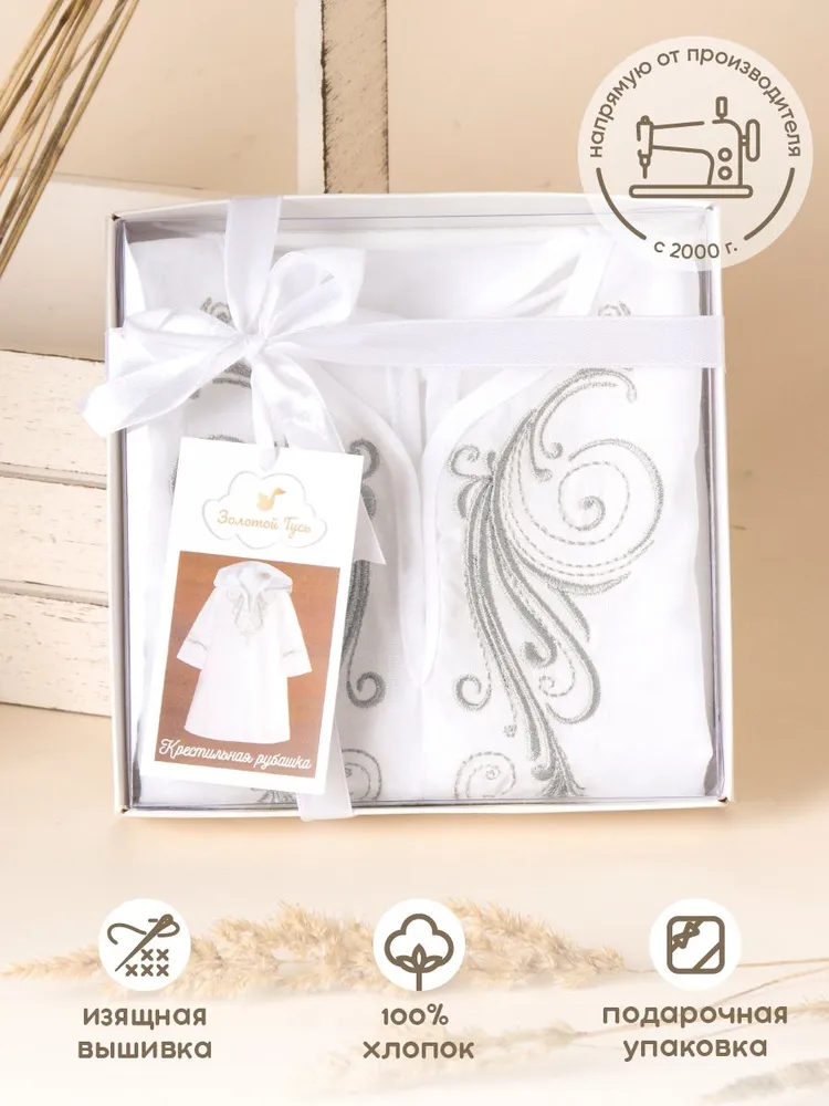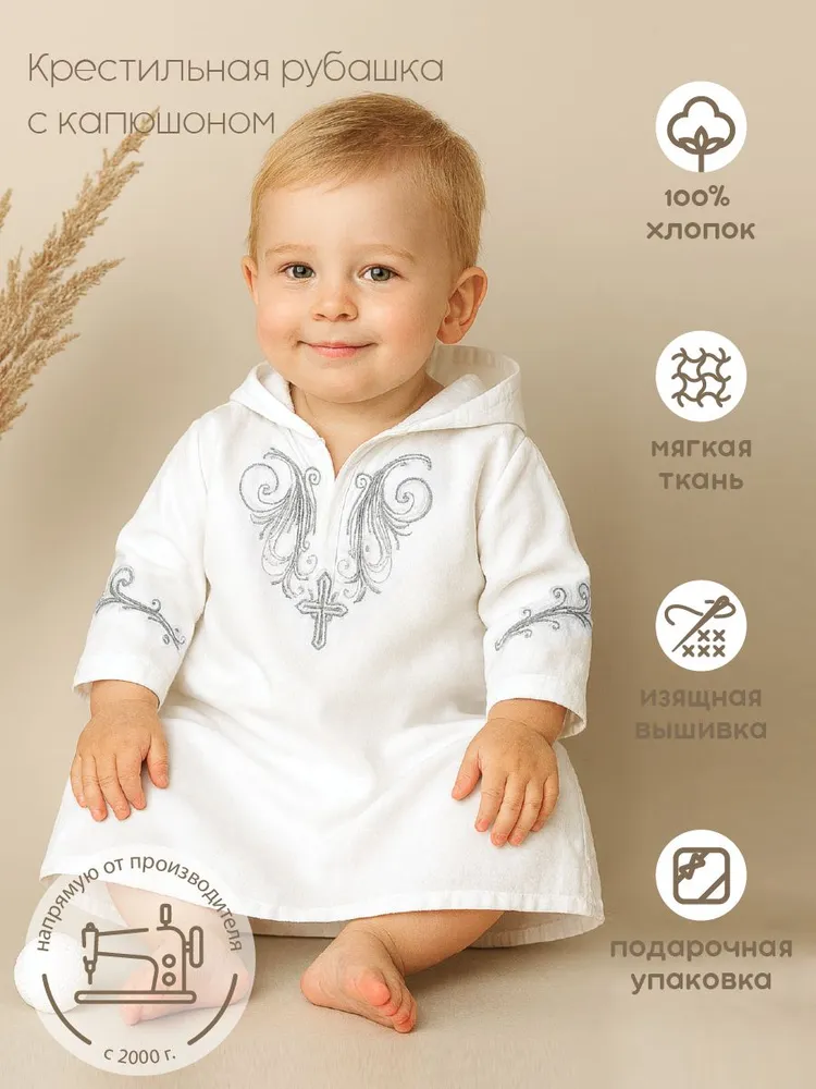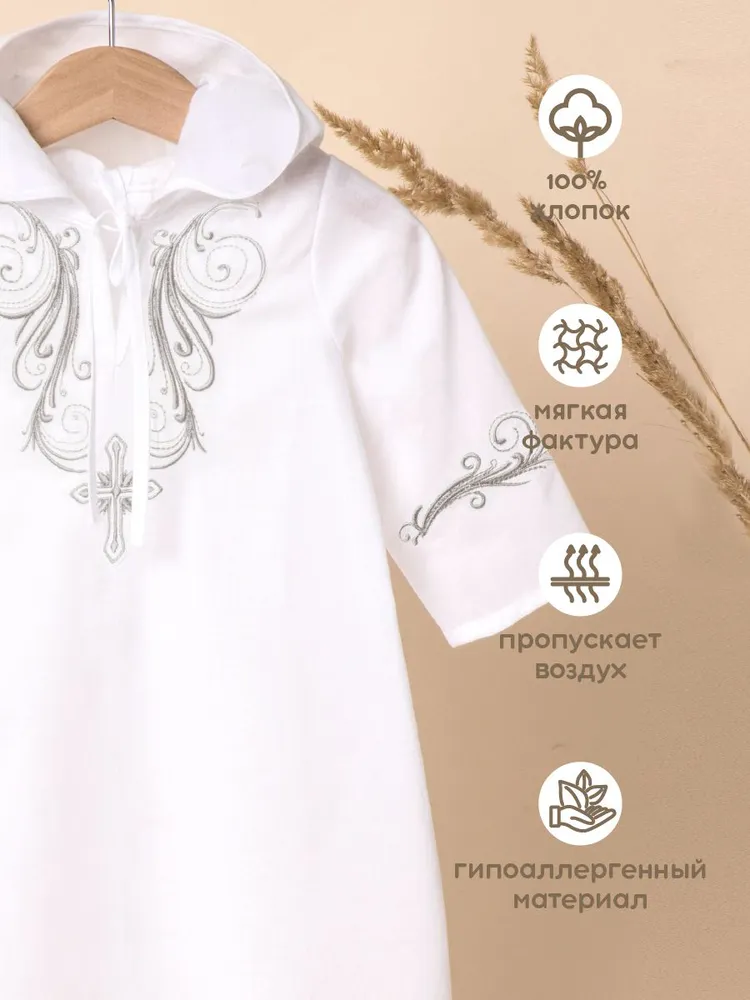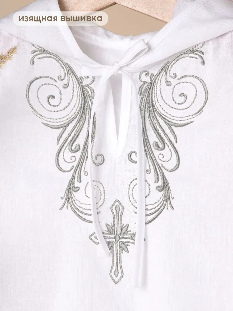 Крестильная рубашка с капюшоном и вышивкой марки Золотой Гусь, производство Россия.