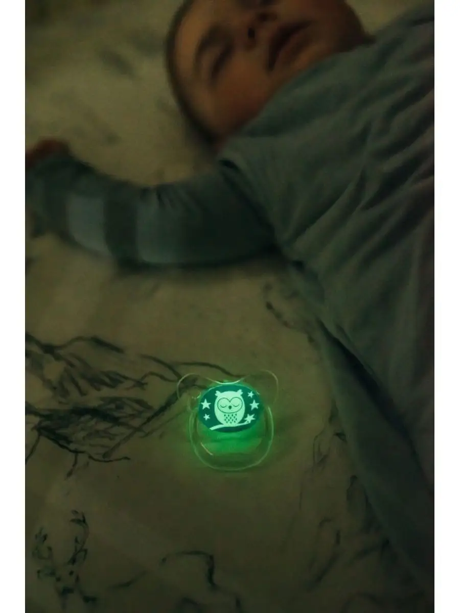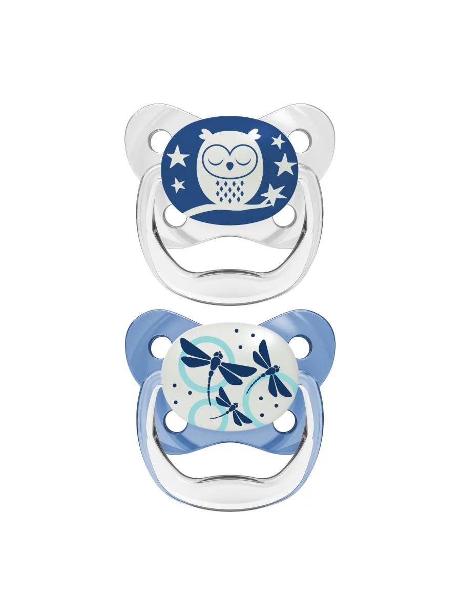 Ортодонтическая соска-пустышка светящаяся в темноте для новорожденных с колпачком 2 шт