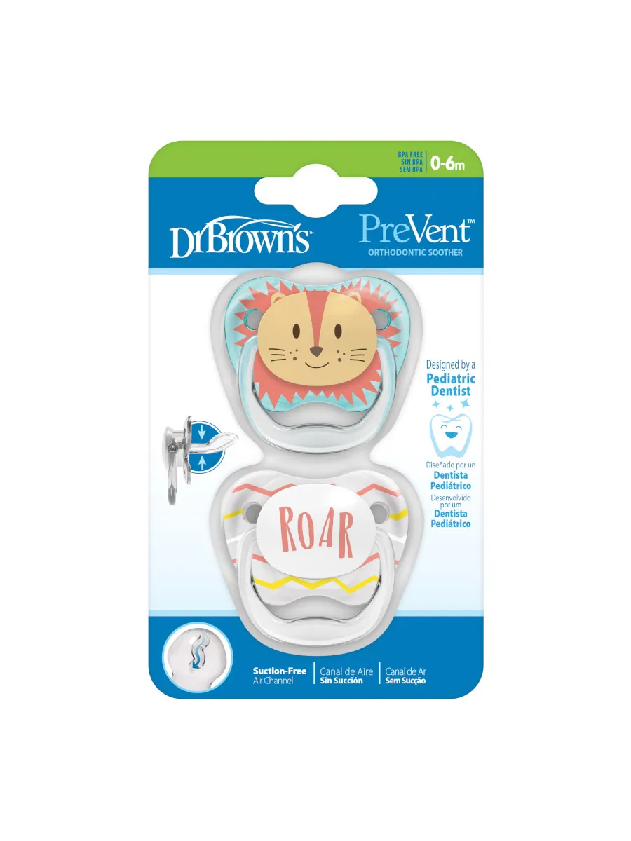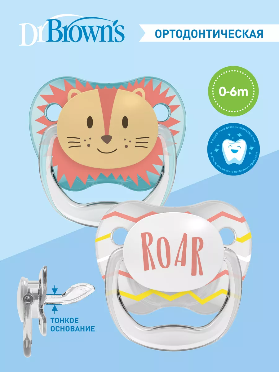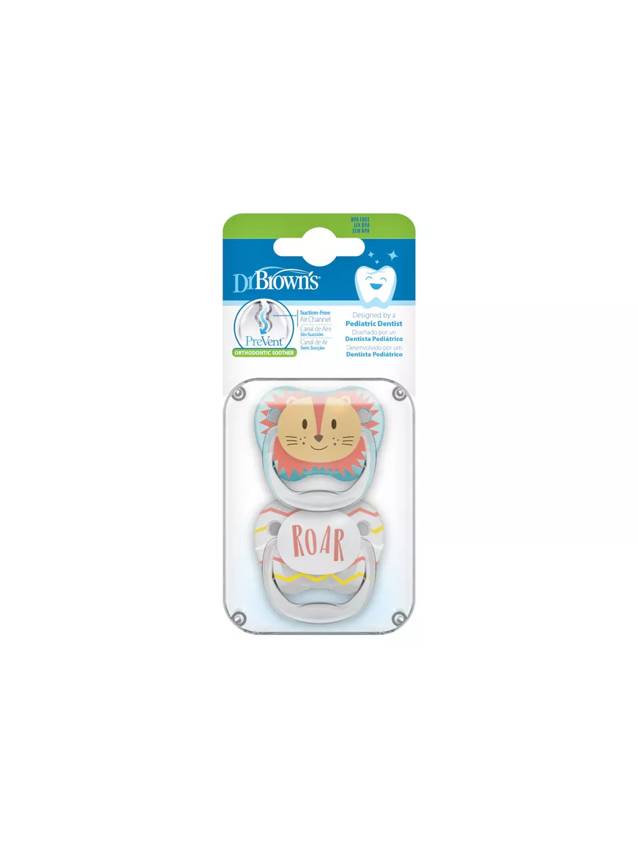 | Ортодонтические соски-пустышки Dr. Brown's PreVent от 0 до 6 месяцев с колпачком 2 шт. Соски пустышек изготовлены из силикона: идеального материала без вкуса и запаха, который не вступает в реакцию со слюной и не вызывает аллергии. Соски-пустышки комплектуются защитным колпачком на защёлке и допускают паровую стерилизацию. Рекомендовано в целях гигиены и безопасности заменять пустышки 1 раз в месяц. Воздушный канал ослабляет разрежение в ротовой полости и снижает давление на верхнее нёбо. Мягкая, ослабляющая разрежение грушевидная часть соски при сосании расходится в стороны и не оказывает негативное влияние на верхнее нёбо малыша, тем самым минимизируя риск нарушения прикуса. Основание ортодонтической соски-пустышки PreVent в два раза тоньше, чем у аналогичных пустышек, что уменьшает негативное влияние на зубы и ротовую полость ребенка. В отличие от обычных сосок-пустышек, уникальная соска-пустышка Dr. Brown's не ведёт к нарушению прикуса у детей. Разрешено мыть в верхней корзине посудомоечной машины и стерилизовать в стерилизаторе. Не содержит Бисфенол А и другие вредные примеси. Материал: полипропилен, силикон. Внимание: Не принимайте товар в пункте выдачи, если наклейка целостности упаковки товара сорвана, срезана либо повреждена.