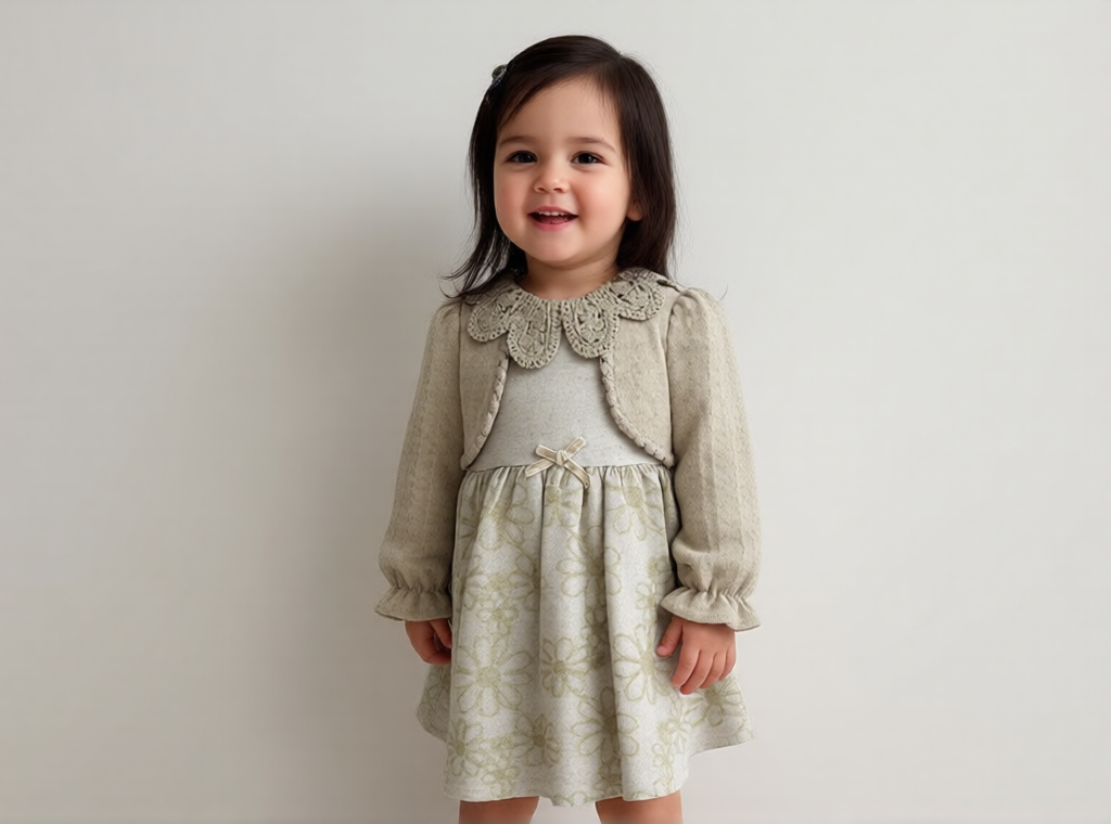 Нарядное платье для девочки из нежной ткани создаст неповторимый образ для вашей малышки .Нарядное платье – отличное вложение в гардероб даже самой маленькой девочки. Невесомое платье для малыша в винтажном стиле не стесняет движений. Пышное детское платье можно использовать на каждый день, так и на праздник, отличный вариант для фотосессии. Так же красивое платье - хороший вариант подарка. Детское платье выполнено из мягкой вязанной ткани. Оно не колется, что очень важно для малышей. Красивое хлопковое платье с длинным рукавом для маленьких девочек имеет классический вырез, застегивается на молнию сзади. Декорировано рюшами.