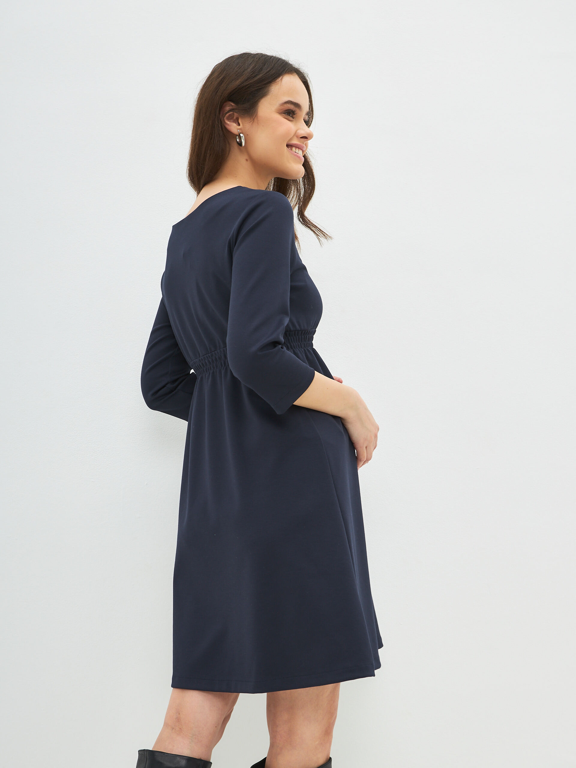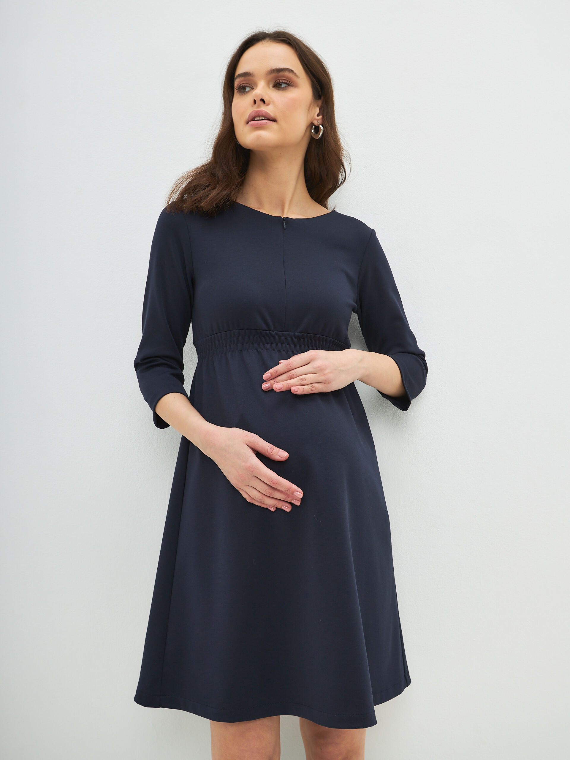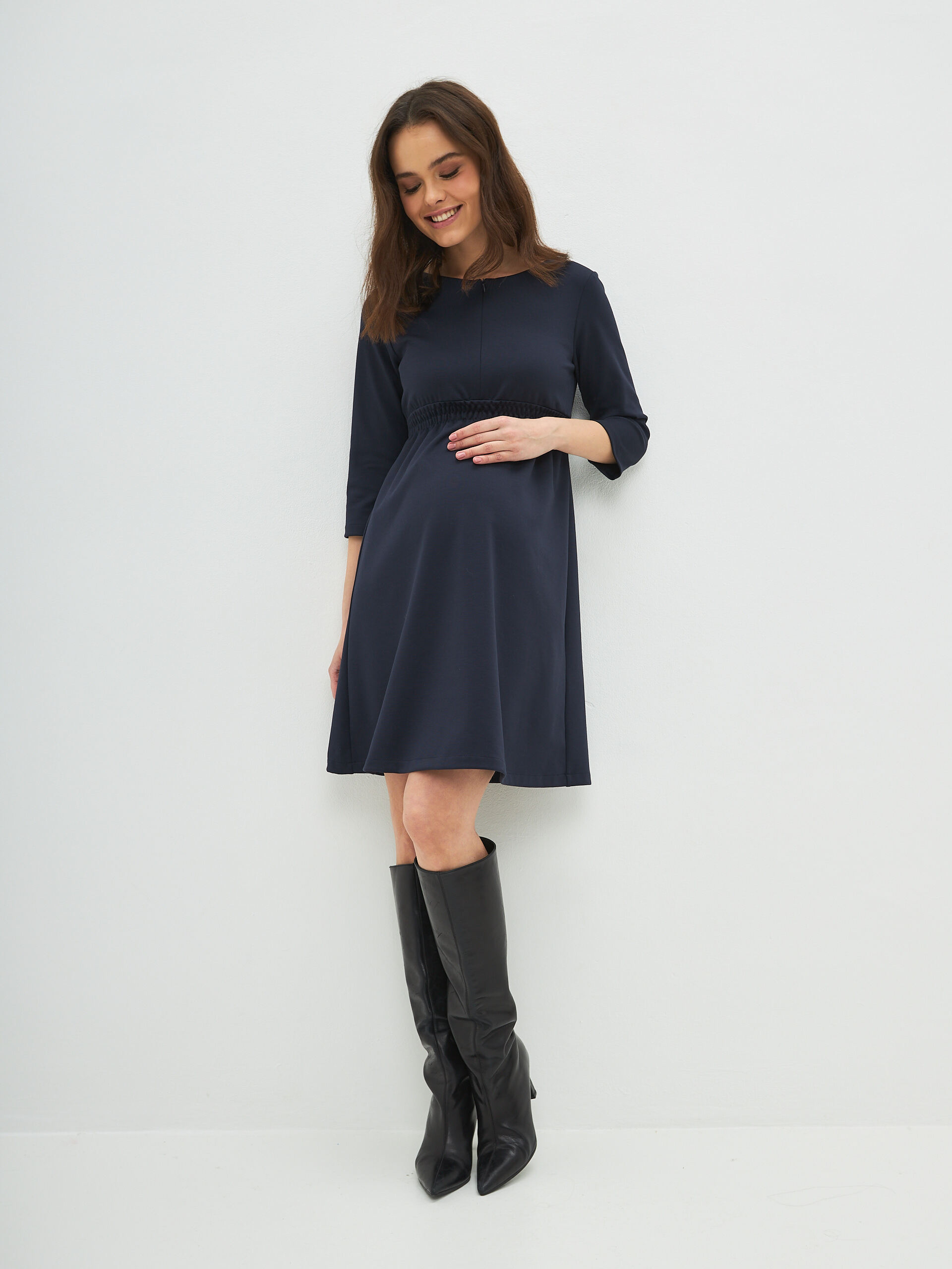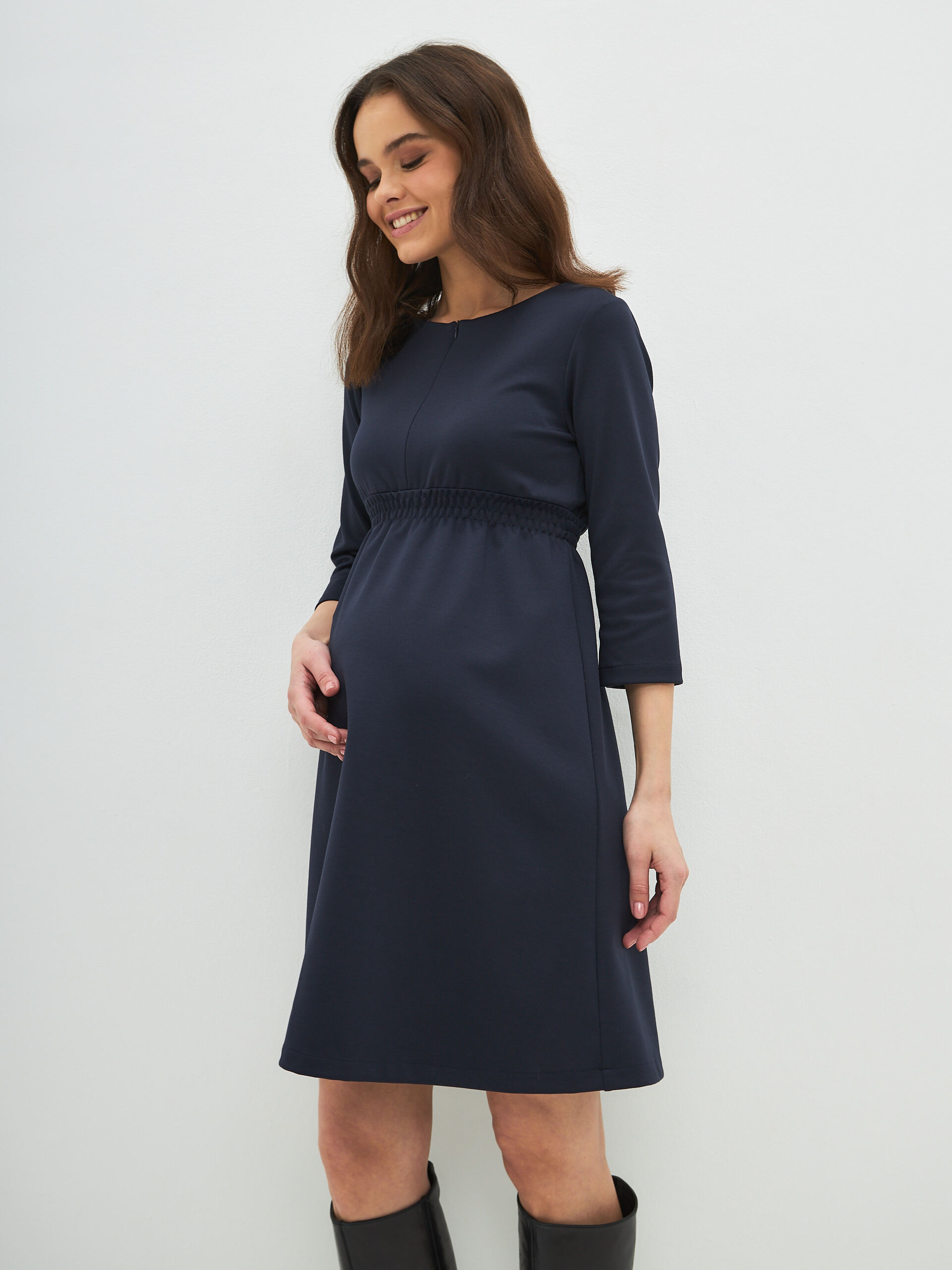 Повседневное трикотажное женское платье "Сива" осень или зима для кормящих мам из высококачественного мягкого трикотажа станет незаменимой вещью в Вашем гардеробе во время беременности и в период кормления грудью. Модель тянется и удобно на всех сроках беременности, на любом триместре , а также после родов , скрывает недостатки фигуры и позволяет легко проводить вскармливания малыша, благодаря скрытой молнии. Модное прямого силуэта комфортной длины до колен миди и незаметным диагональным секретом для кормления грудью на молнии. Потайная молния не привлекает к себе внимания, никто не догадается, что это специализированная одежда для кормящих мам.