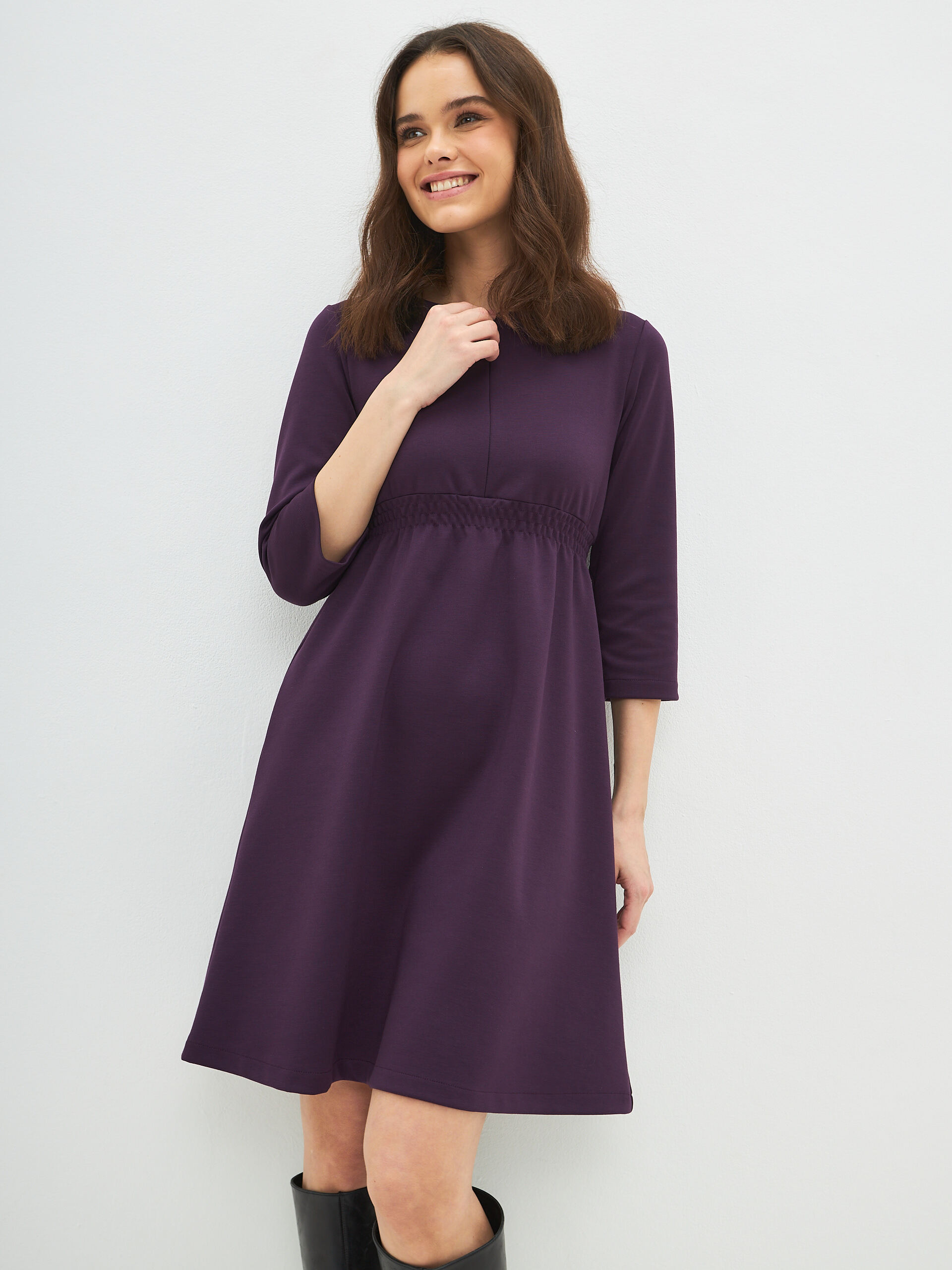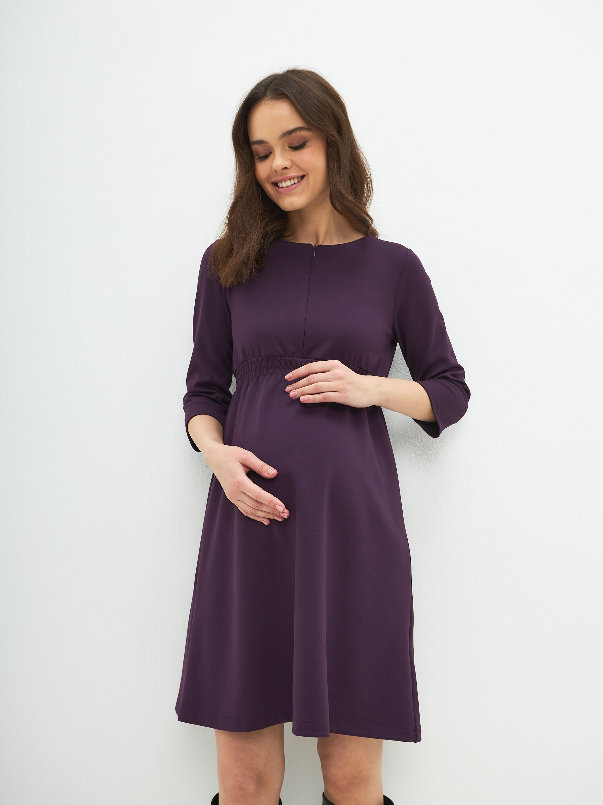 Повседневное трикотажное женское платье "Сива" осень или зима для кормящих мам из высококачественного мягкого трикотажа станет незаменимой вещью в Вашем гардеробе во время беременности и в период кормления грудью. Модель тянется и удобно на всех сроках беременности, на любом триместре , а также после родов , скрывает недостатки фигуры и позволяет легко проводить вскармливания малыша, благодаря скрытой молнии. Модное прямого силуэта комфортной длины до колен миди и незаметным диагональным секретом для кормления грудью на молнии. Потайная молния не привлекает к себе внимания, никто не догадается, что это специализированная одежда для кормящих мам.