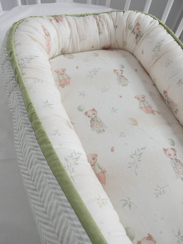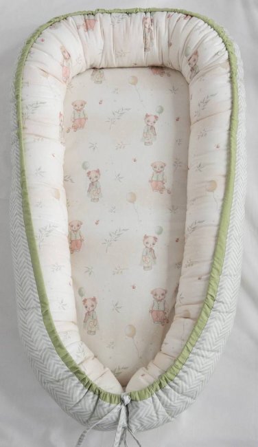 Подушка-гнездышко "Винтаж" - создана для комфорта и безопасности вашего малыша. Находясь в коконе, малыш чувствует себя максимально удобно. При этом он спокойно засыпает в кроватке с маятником, на руках у мамы или в родительской постели. Подушка-гнездышко выполнена из высококачественного поплина европейского качества (Международный сертификат качества ОЕКО-ТЕХ Standart 100) и урашена эксклюзивным дизайном. Первоначально ее можно использовать с завязанными бортиками, а развязав и разложив их, вы получите матрасик для пеленального столика размером 100х60см. Состав: ткань поплин, 100% хлопок, наполнитель Холлкон ПЭ 100%. Размер 75х45см.