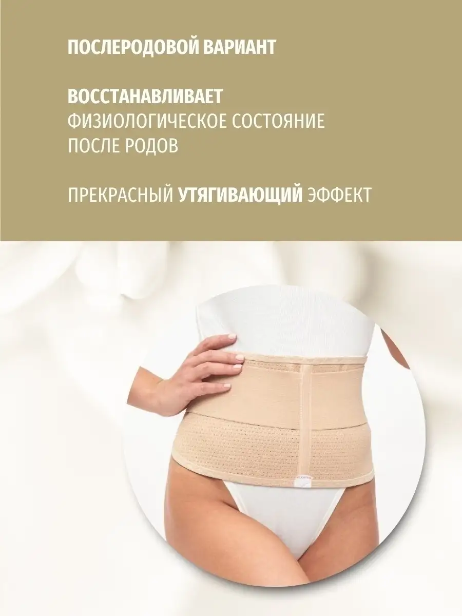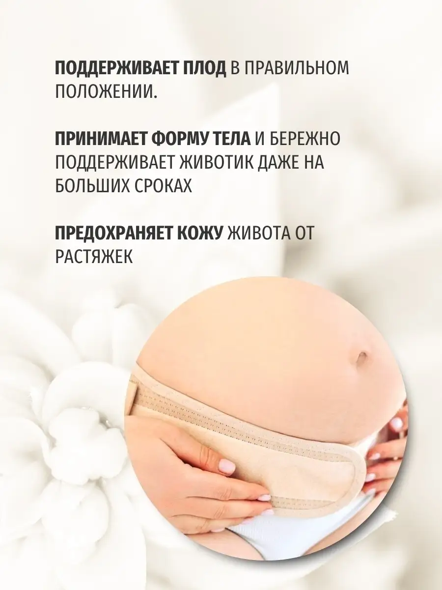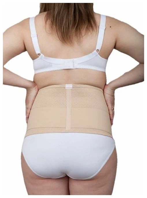 Бандаж дородовый. Воздействие: эластичная поддержка живота; стабилизация положения внутренних органов и матки; обеспечение нормального положения плода; предохранение кожи живота от чрезмерного растяжения; снижение нагрузки на пояснично-крестцовый отдел позвоночника; обеспечение комфортных движений и ходьбы. Показания к применению: нормально протекающая беременность с 20 недели; многоплодие, многоводие и гипертонус матки во время беременности; болевые ощущения, тяжесть в области поясничного отдела во время беременности; профилактика появления растяжек; первый месяц послеродового периода. Особенности конструкции: высота - 18 см; имеет анатомический крой; изготовлен из перфорированной дышащей бандажной ленты; до родов фиксируется под животом, после родов - надевается широкой частью на живот и фиксируется на спине; степень фиксации регулируется дополнительной стяжкой. Инструкция к применению: наденьте бандаж на нижнее белье, лежа на спине; зафиксируйте застежку бандажа под животом; отрегулируйте степень фиксации с помощью дополнительной стяжки.