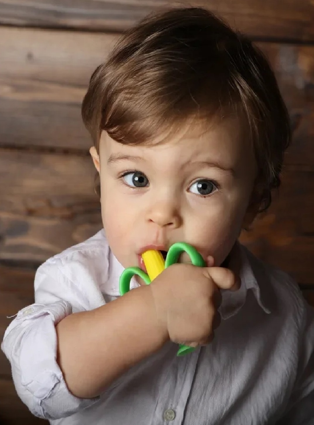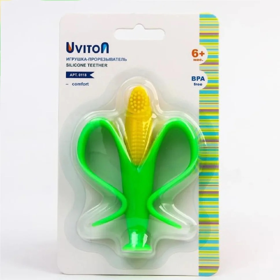 Небольшой размер прорезывателя помогает легко поместиться в маленьких ручках, а листочки кукурузы, согнутые в ,так называемые, ручки, служат для надежной фиксации и удобного захвата игрушки.