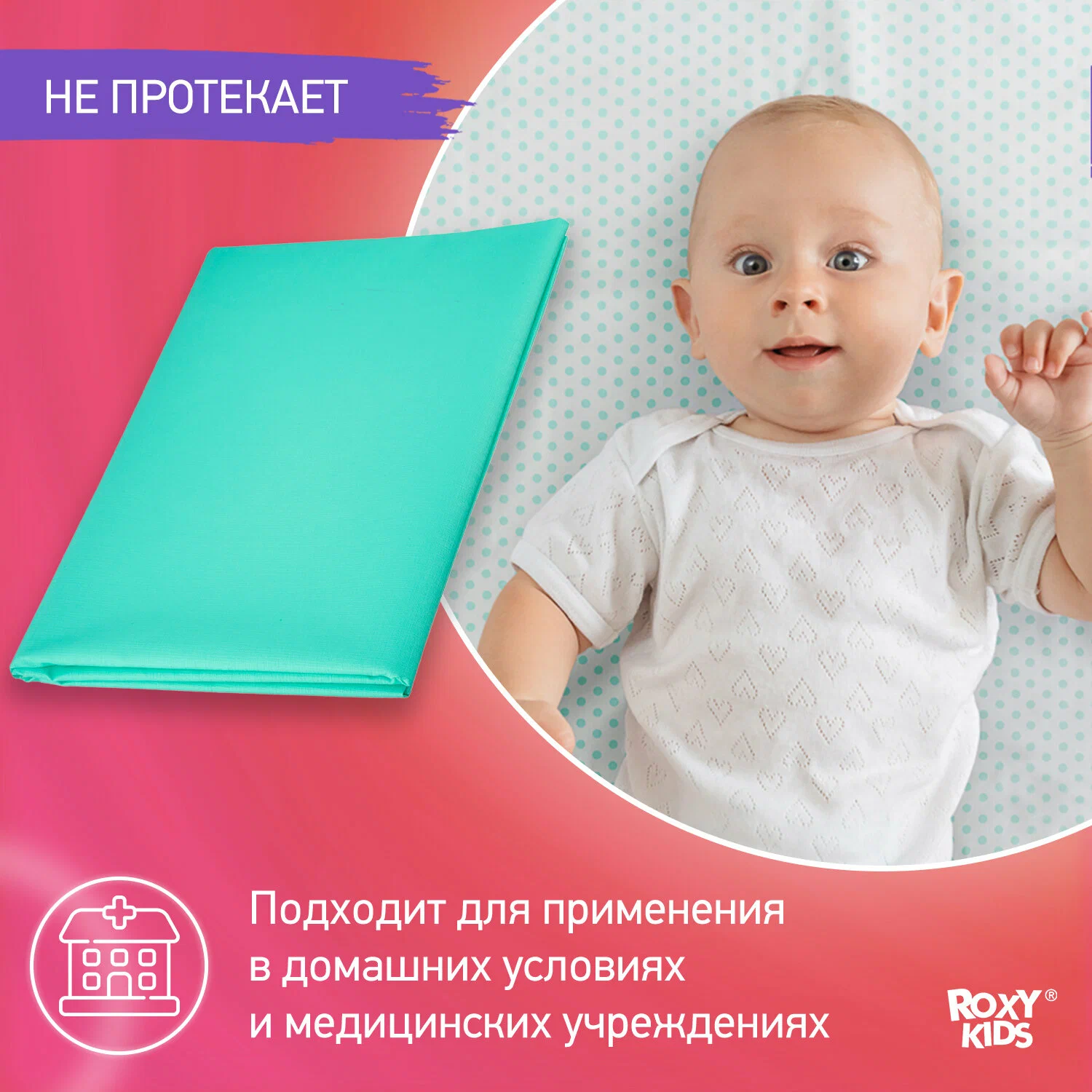 Непромокайка выполнена из специального плотного медицинского материала. Имеет окантовку по периметру и отлично вписывается в кроватку 120 на 60 см (60х120 см). Непромокаемая многоразовая натяжная пеленка имеет отличную теплопроводность. Защитный верхний слой на основе поливинилхлорида делает поверхность удобной и комфортной для младенцев. Клеенка-наматрасник быстро приобретает температуру тела, обеспечивая ребенку спокойный дневной и ночной сон. Отсутствует эффект холодного прикосновения, что очень важно в педиатрии. Микропористая структура покрытия придает изделию свойства газопроницаемости. Также подкладочная пеленка-клеенка может использоваться как подстилка на стол для творчества, рисования, лепки из пластилина, а также на парту в школу для уроков труда и занятий изо. Товары для новорождённых младенцев, аксессуары для маленьких детей, принадлежности для повседневного ухода, игрушки для мальчиков и девочек, подарки и детские подарочные наборы ROXY-KIDS созданы с заботой и любовью о мамах и малышах! Основные характеристики