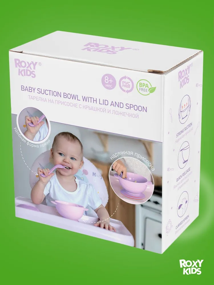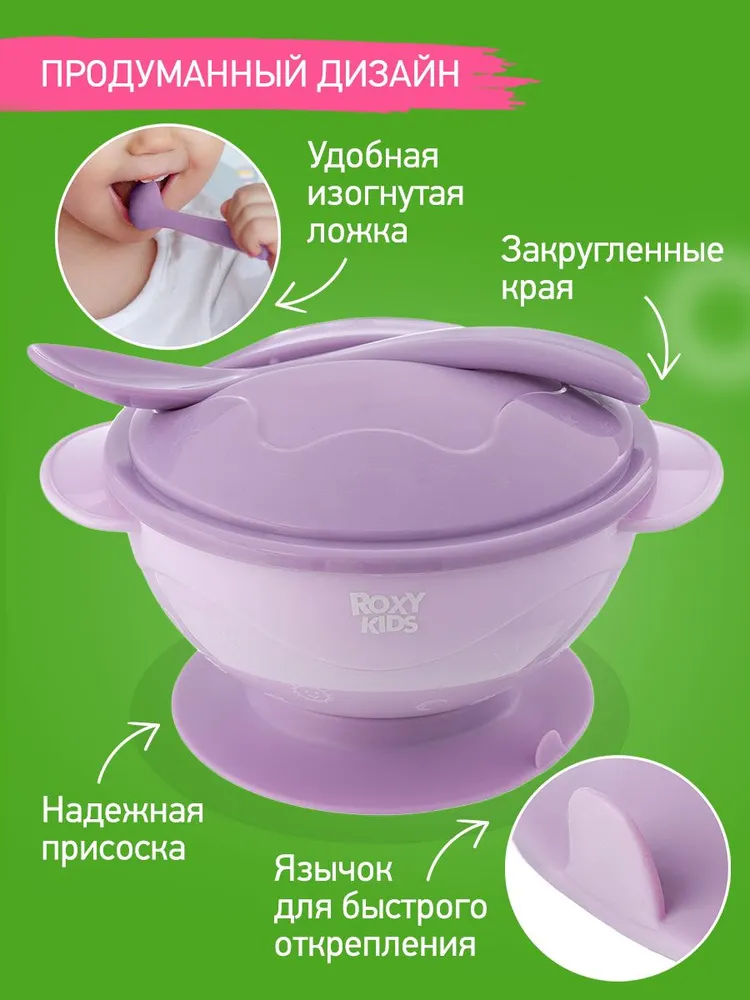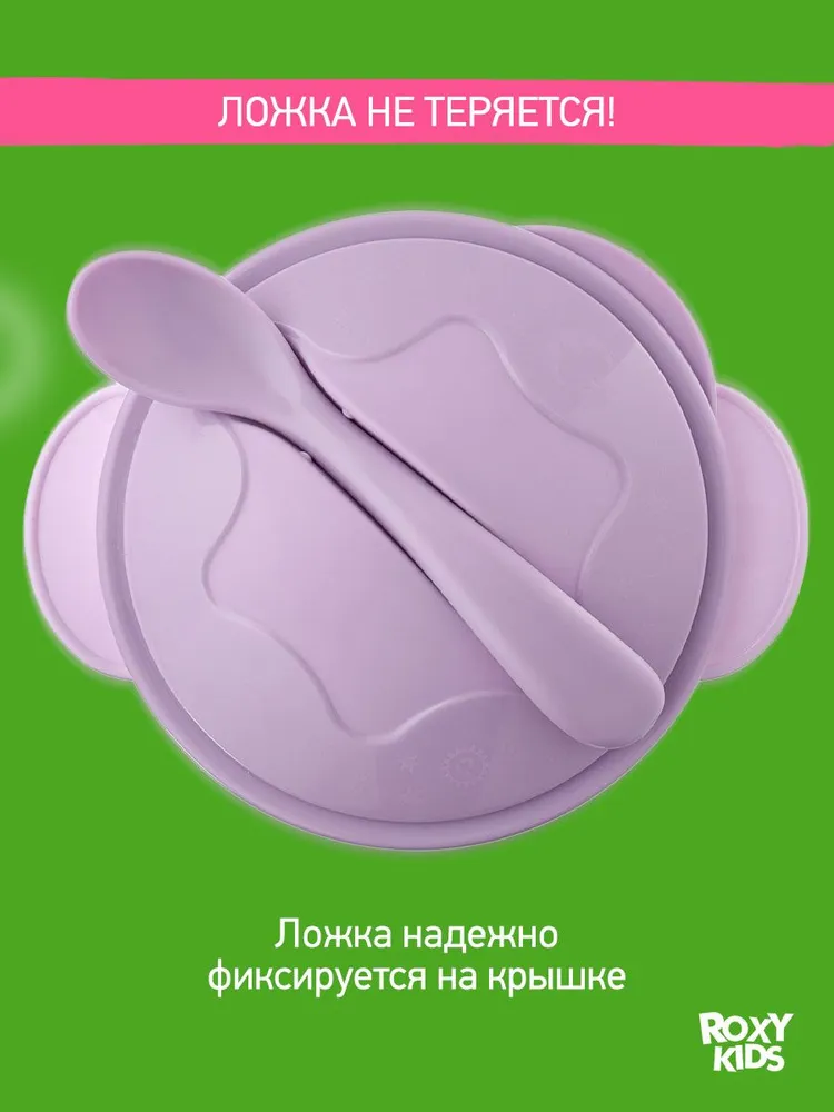 ROXY-KIDS Набор детской посуды / Набор для кормления: тарелка на присоске, крышка и ложка, цвет лавандовый