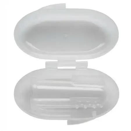 Силиконовая щетка ROXY-KIDS на палец создана специально для ухода за полостью рта малыша в течение первого года его жизни. Она очищает имеющиеся зубы и позволяет избавить ребенка от неприятных ощущений, которые неизбежны при прорезывании новых. Надев на палец щетку-массажер, мама сможет как следует обработать болезненные зоны и облегчить состояние ребенка. Пальчиковая щетка-массажер ROXY-KIDS сделана из безопасного силикона, имеет мягкую щетину, которая не травмирует ткани ротовой полости, и специальные пупырышки для более эффективного массажа. В комплекте есть футляр, который позволят удобно хранить это изделие. Щетка имеет соответствует всем стандартам безопасности.